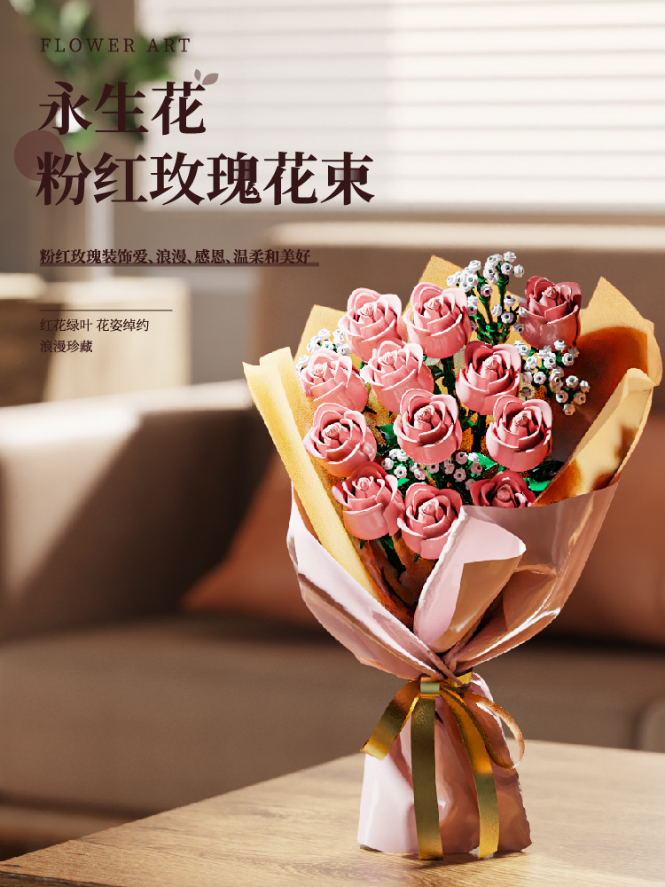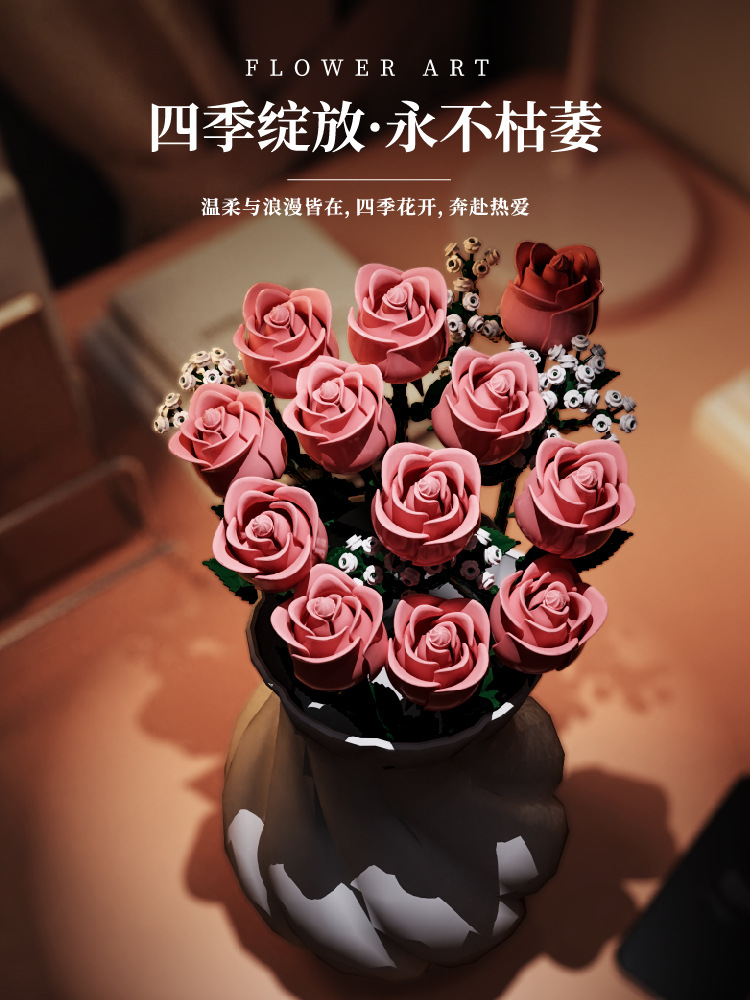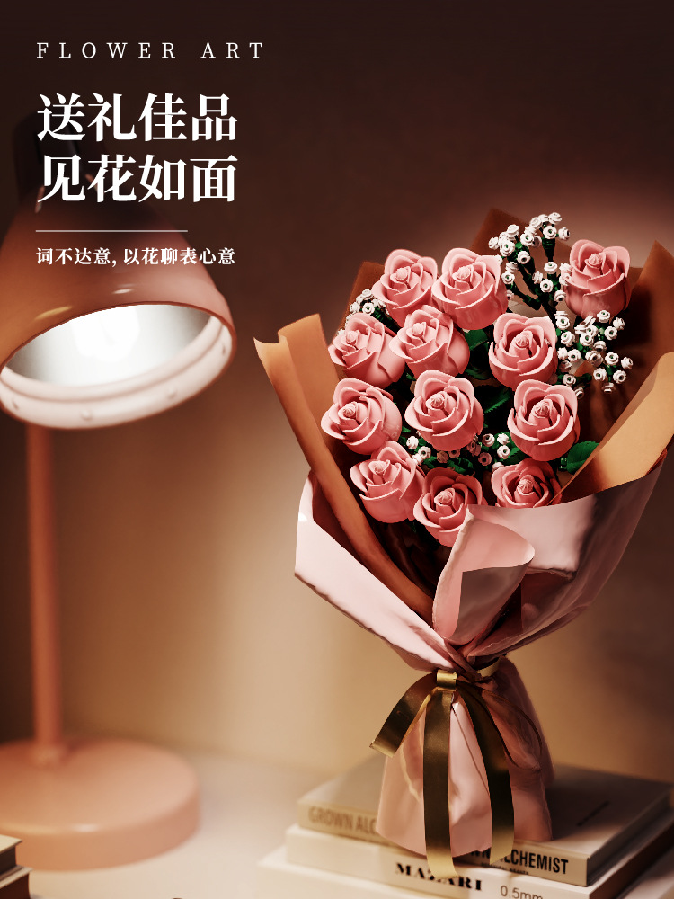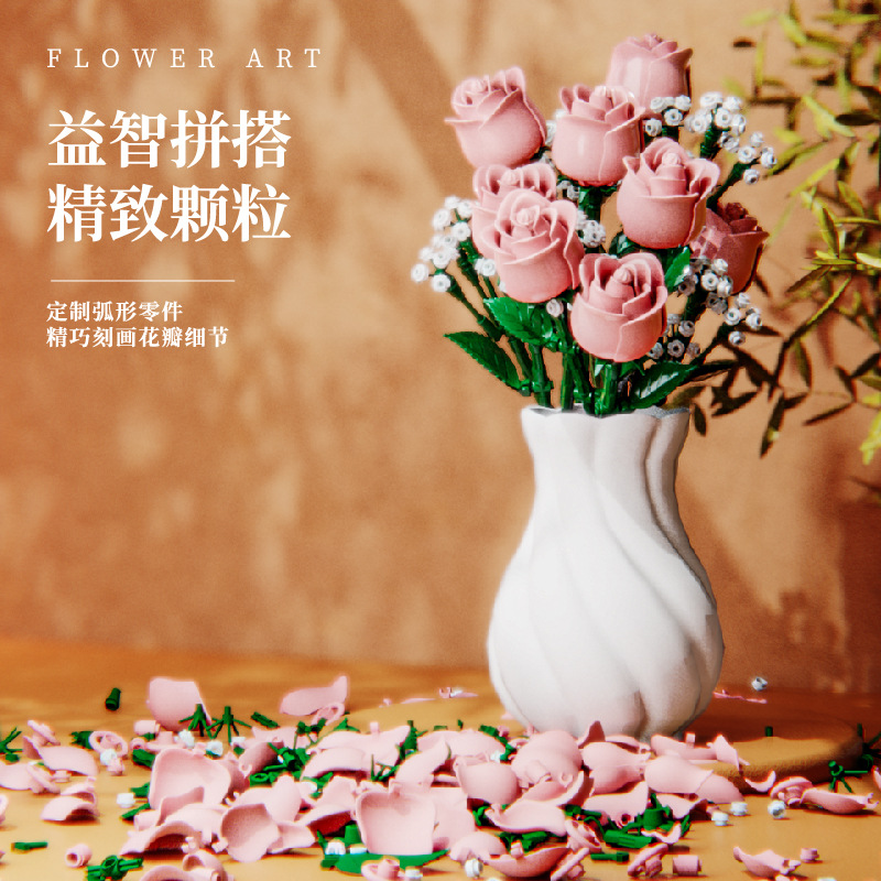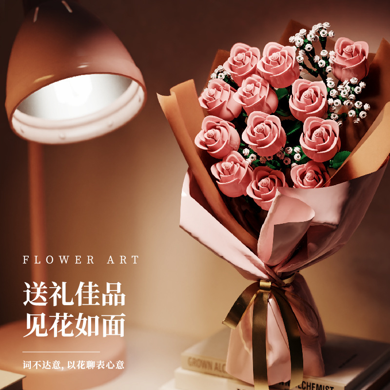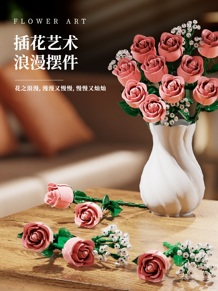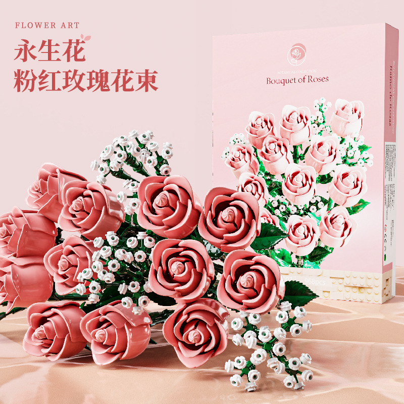 国境を越えた互換性のあるレゴ ピンク ローズ ビルディング ブロック フラワー ギフト 男の子と女の子へのギフト ロマンチックなバレンタインデーのギフト