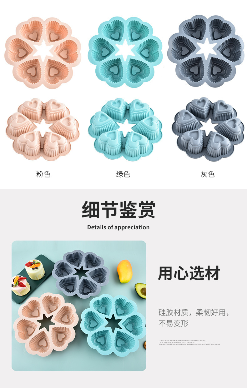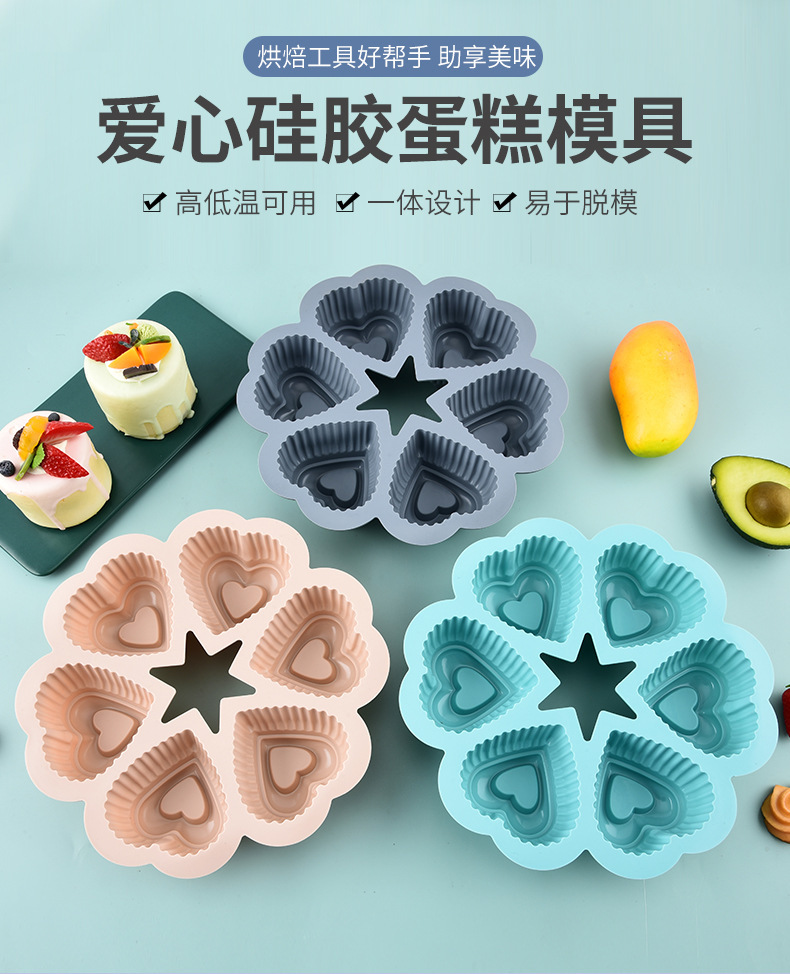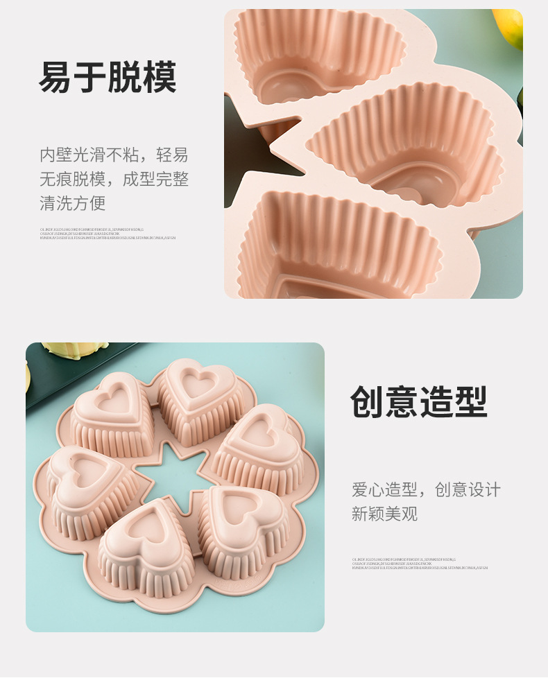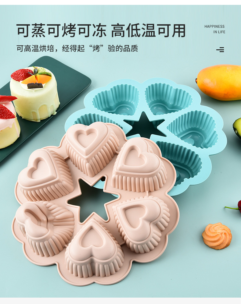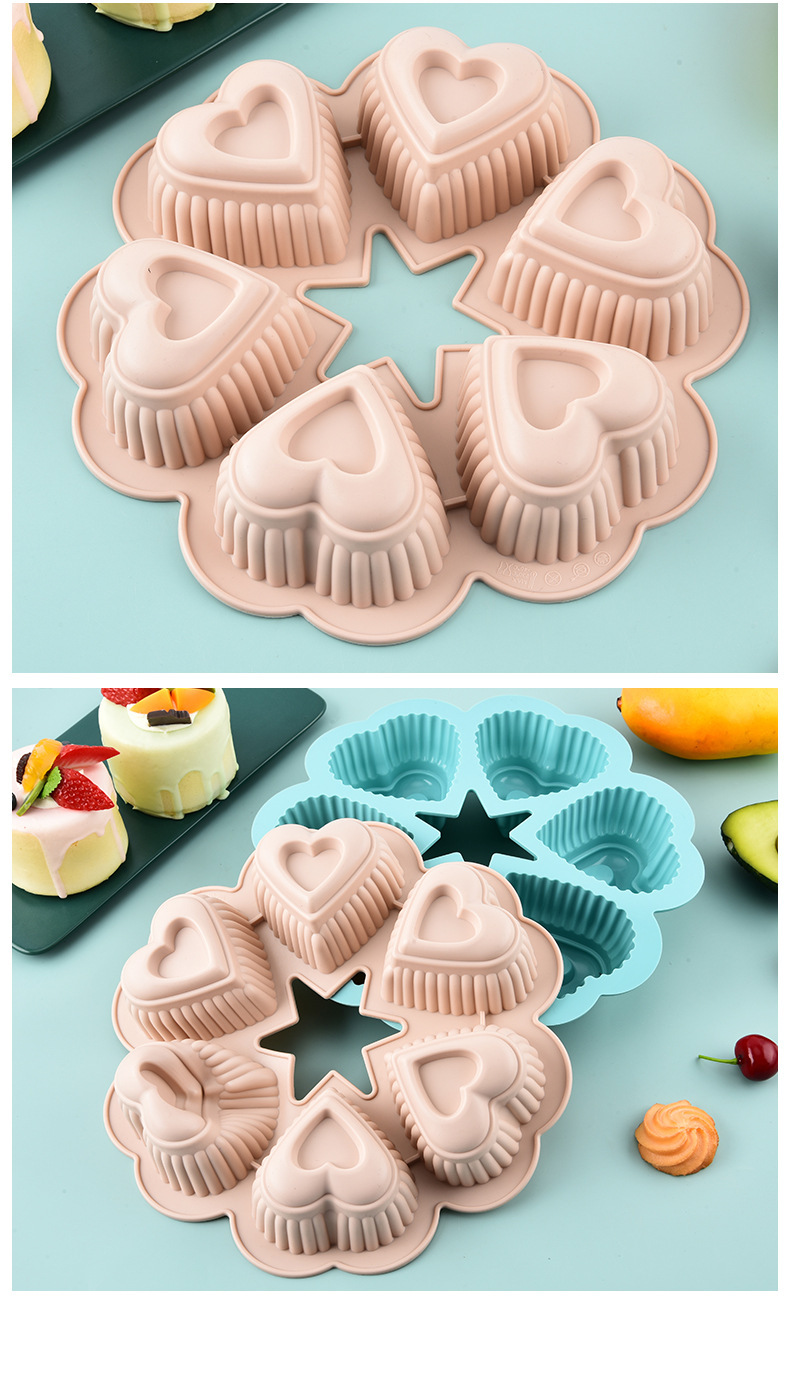 シリコーンケーキ型 6 ピースハート型馬蹄ケーキ型手作りチョコレートビスケット型簡単に離型できるベーキングパン