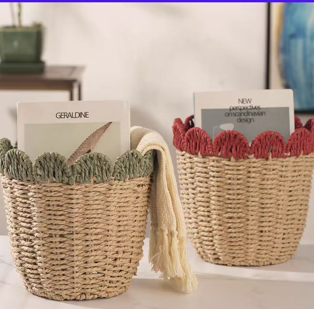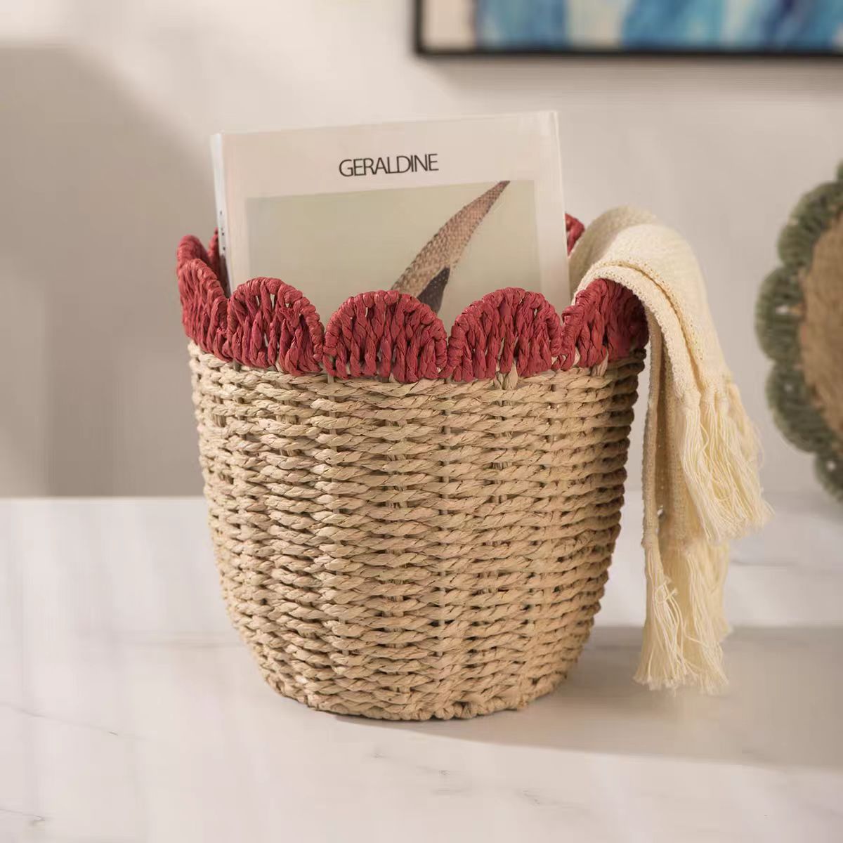 扇形のわら収納バスケット、クリエイティブな虹色の紙収納バスケット、玄関キー雑貨収納バスケット、手織りバスケット
