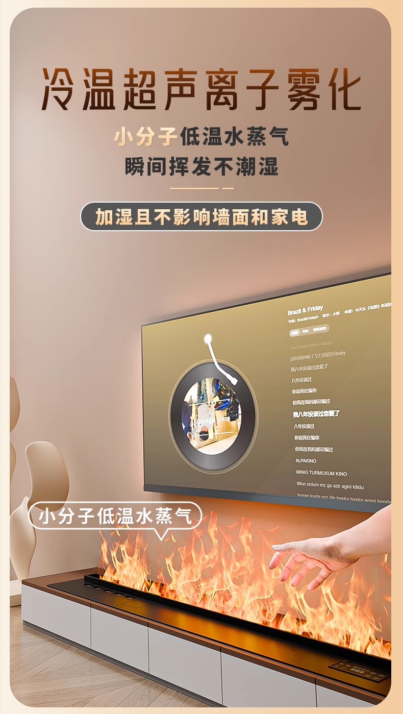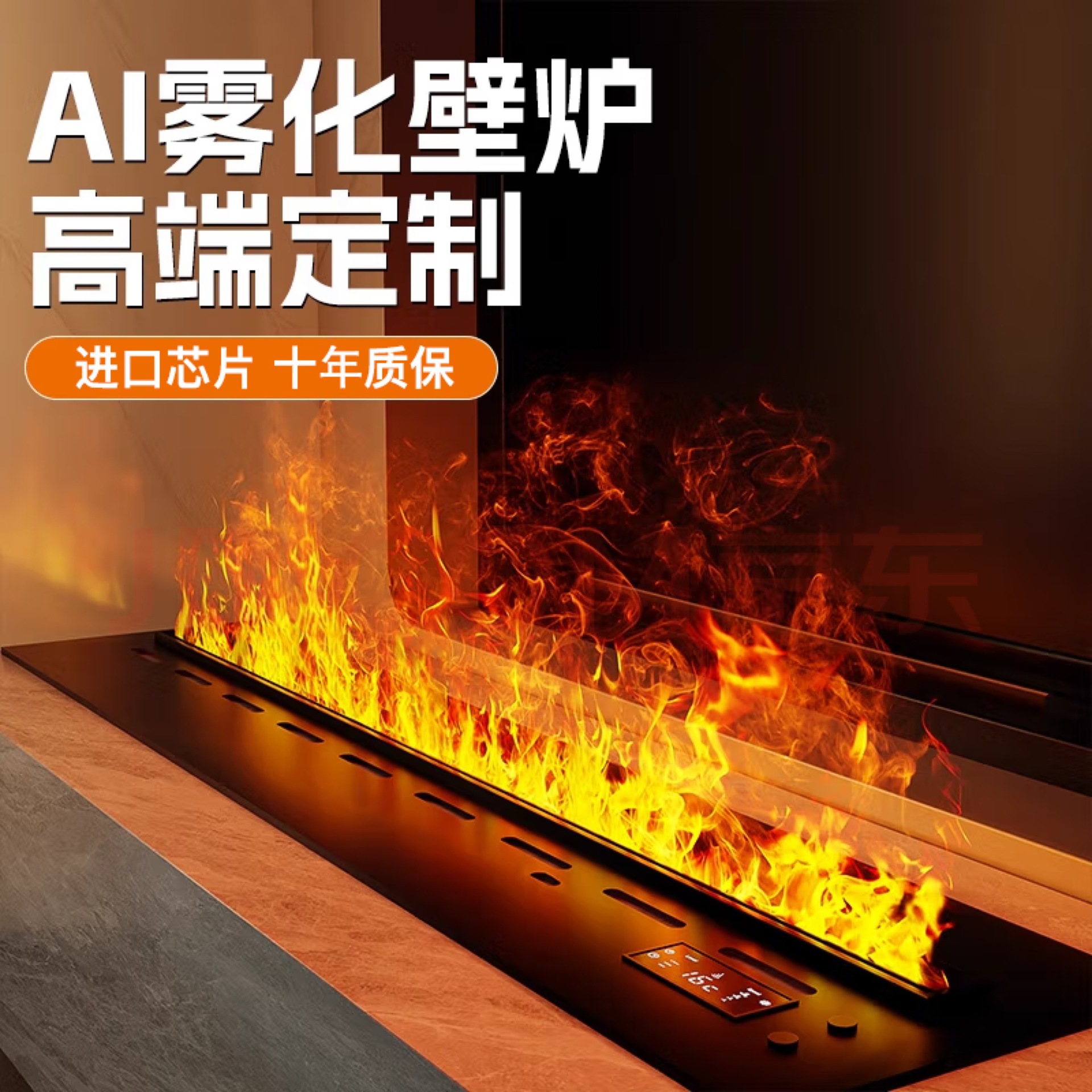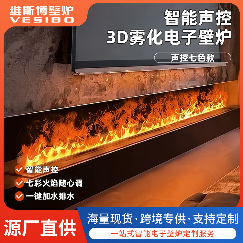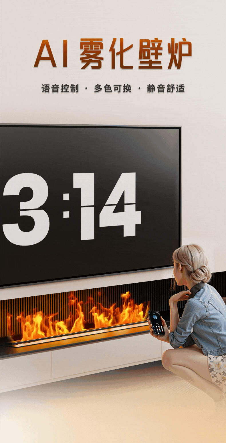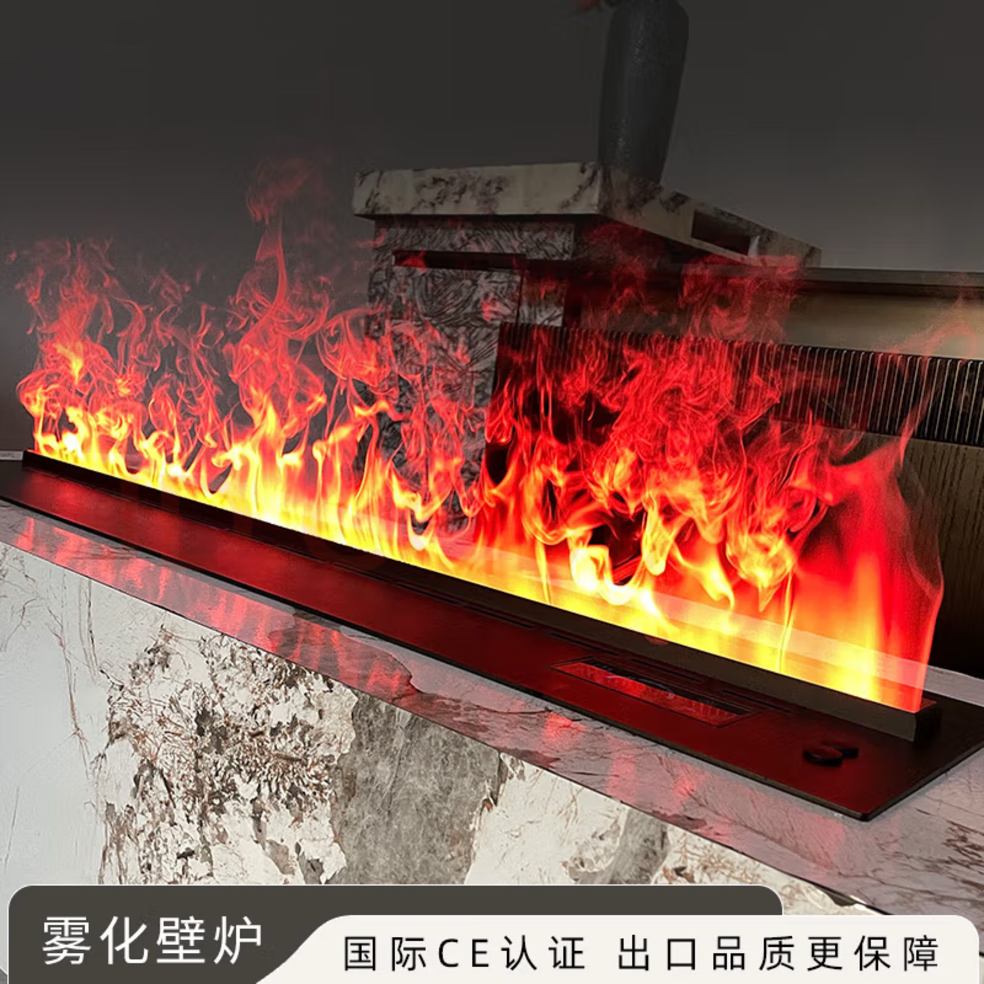 雾化壁炉嵌入式3D语音声控仿真火焰加湿器超薄不锈钢智能装饰壁炉