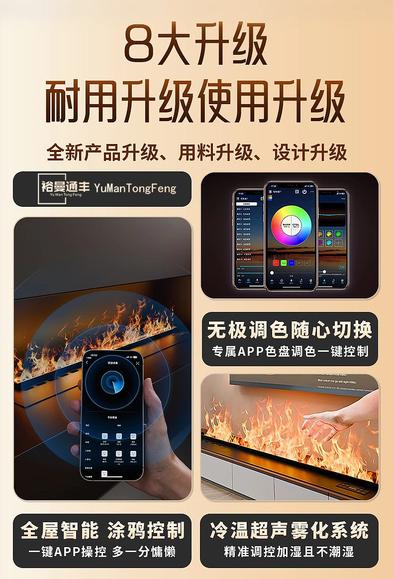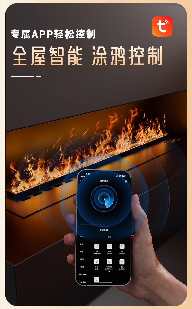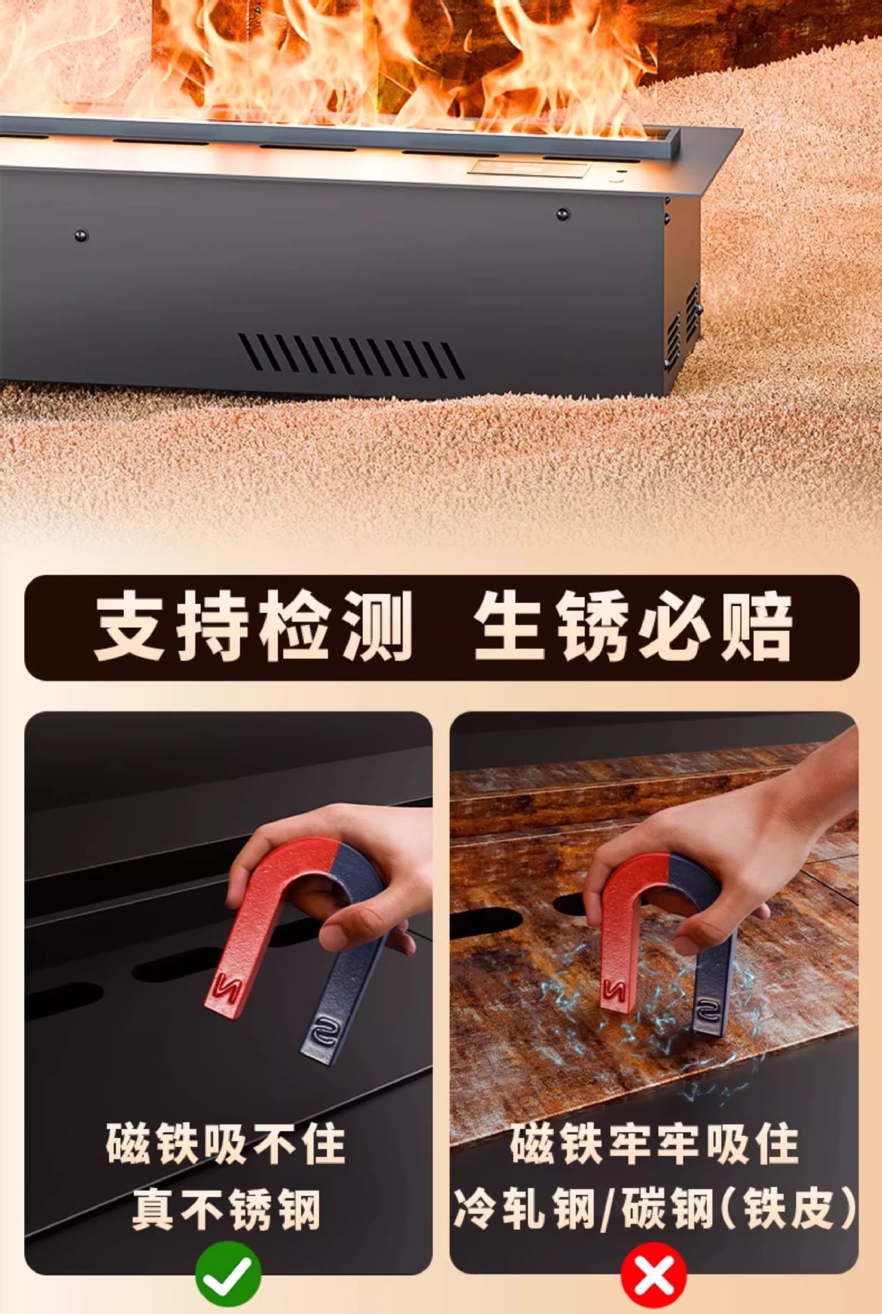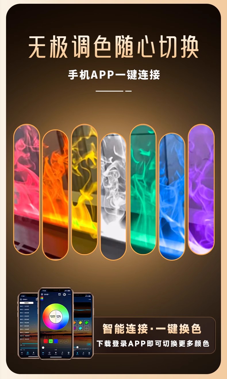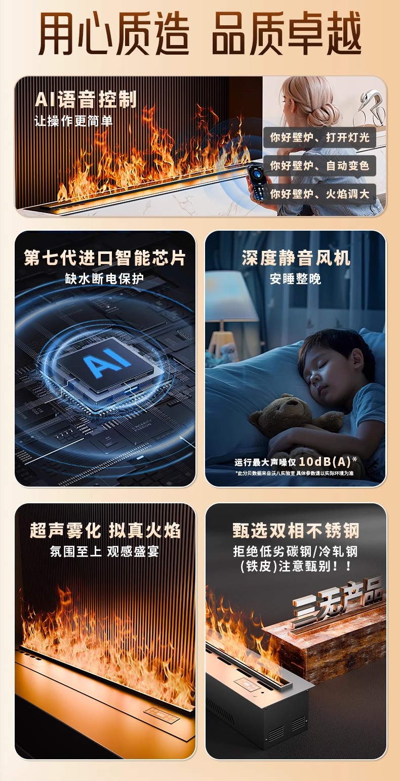 雾化壁炉嵌入式3D语音声控仿真火焰加湿器超薄不锈钢智能装饰壁炉
