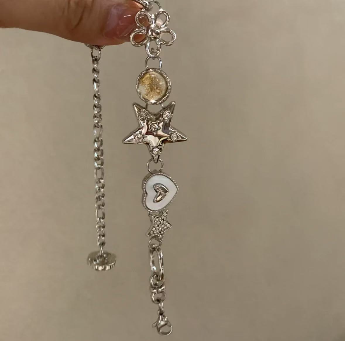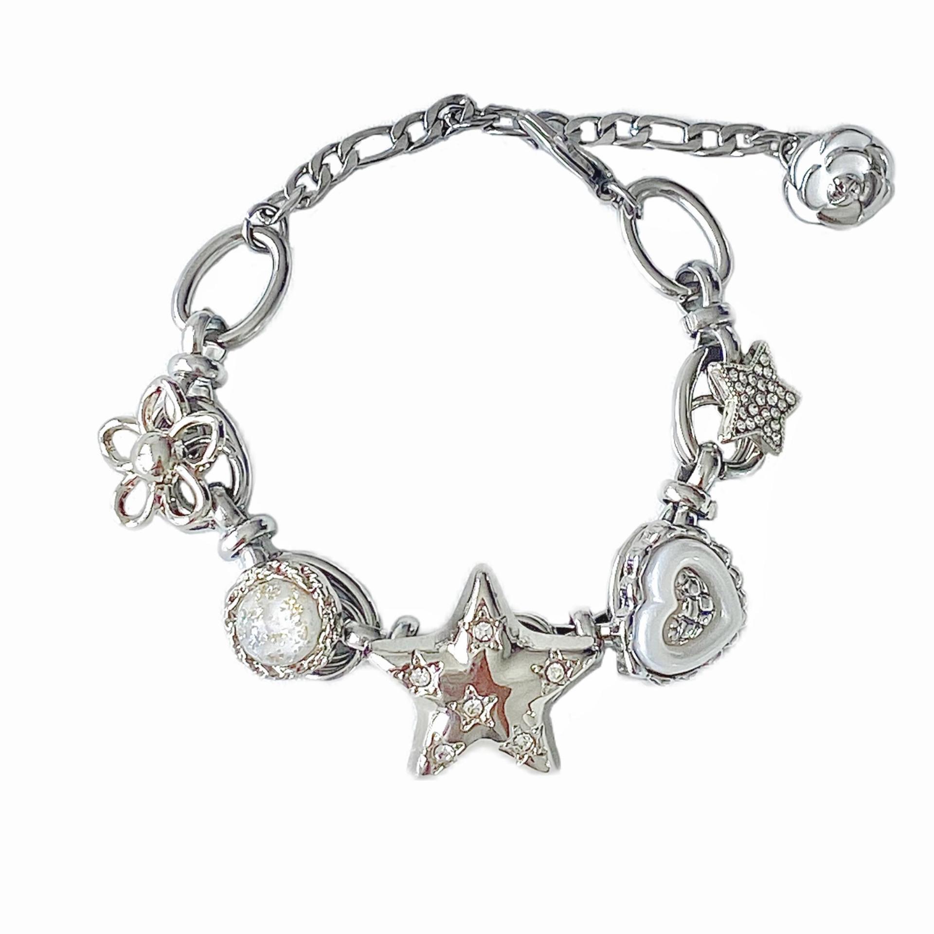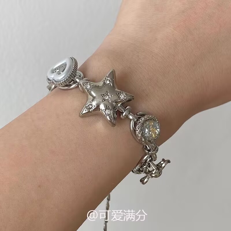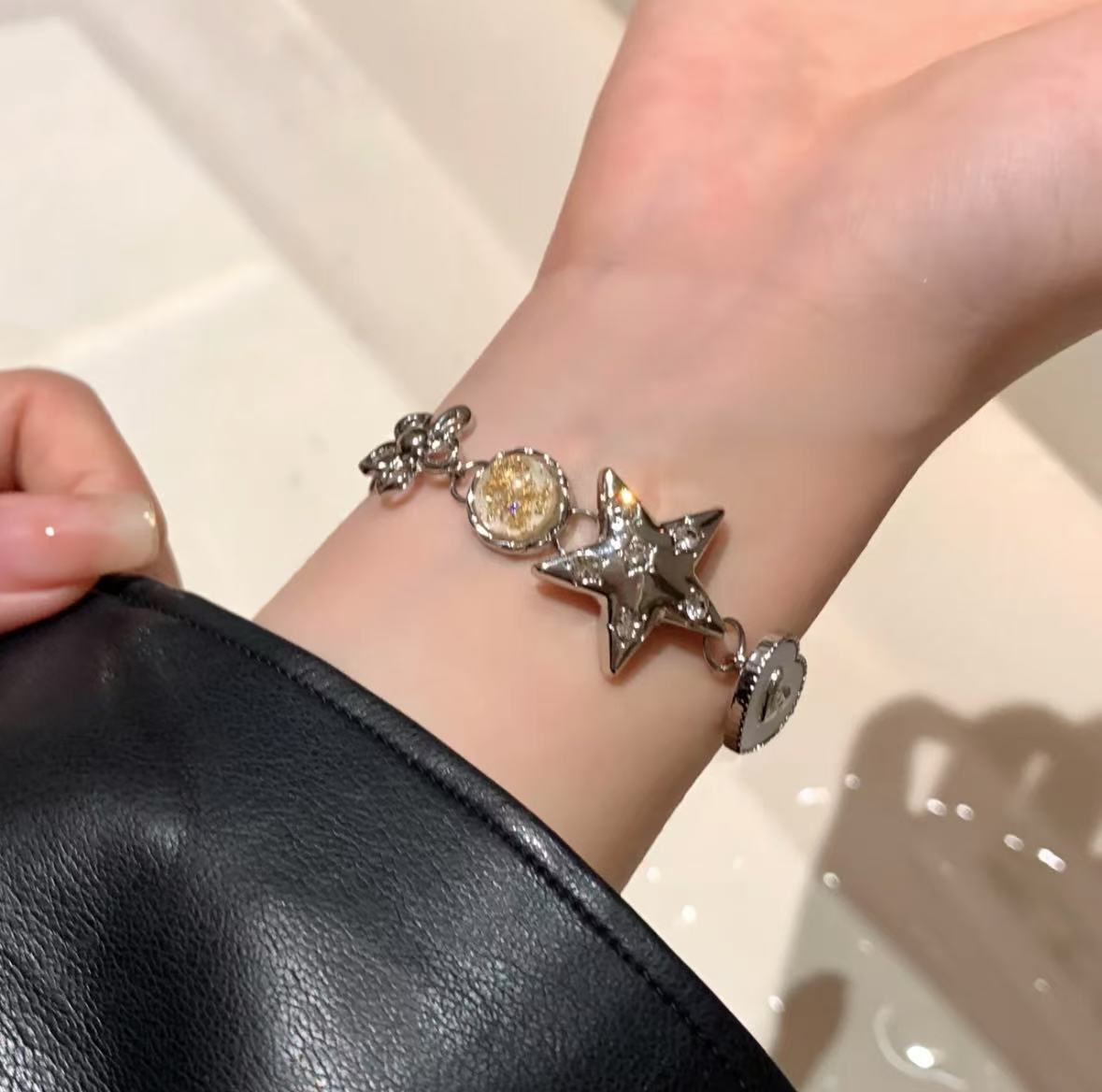 「Stars Within Reach」ヘビーデューティーポイントドリルスターラブボタンブレスレット韓国風ライトラグジュアリーメタリックライトラグジュアリーブレスレット女性用