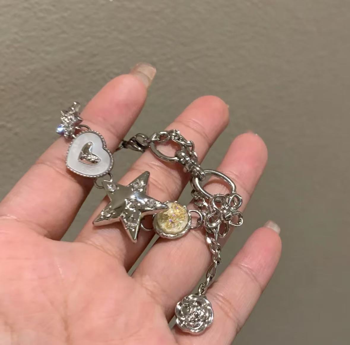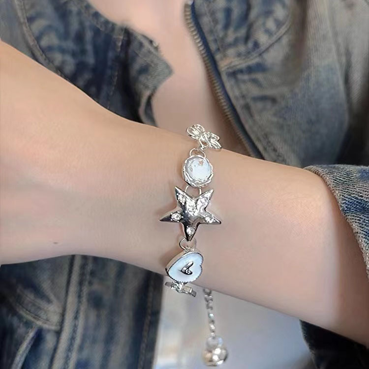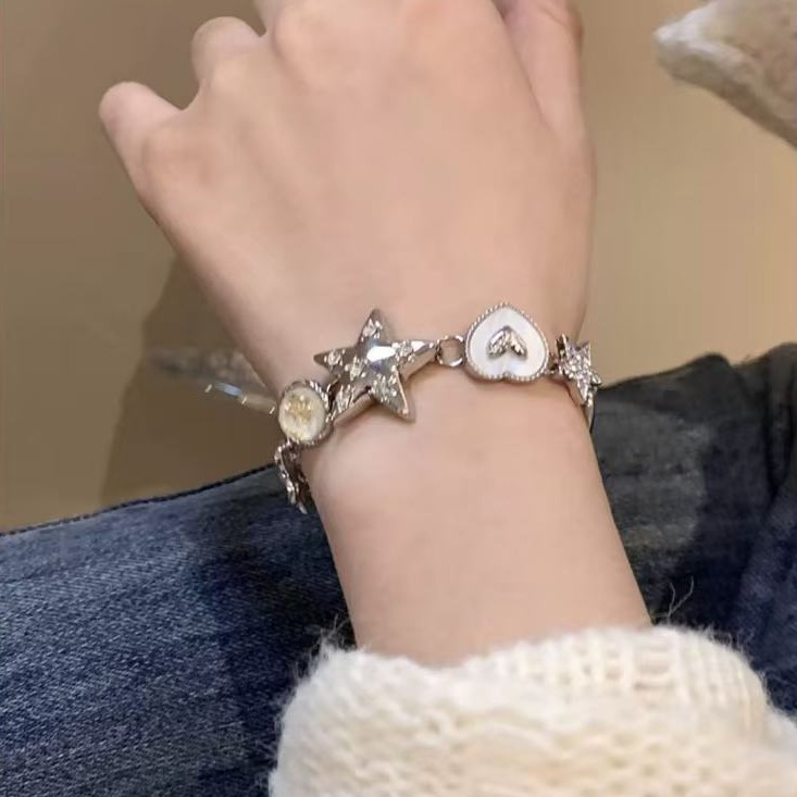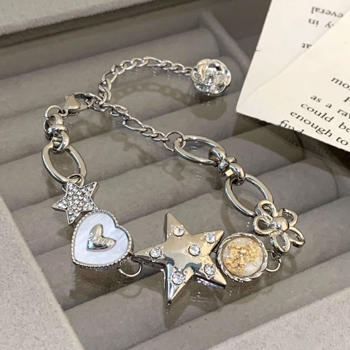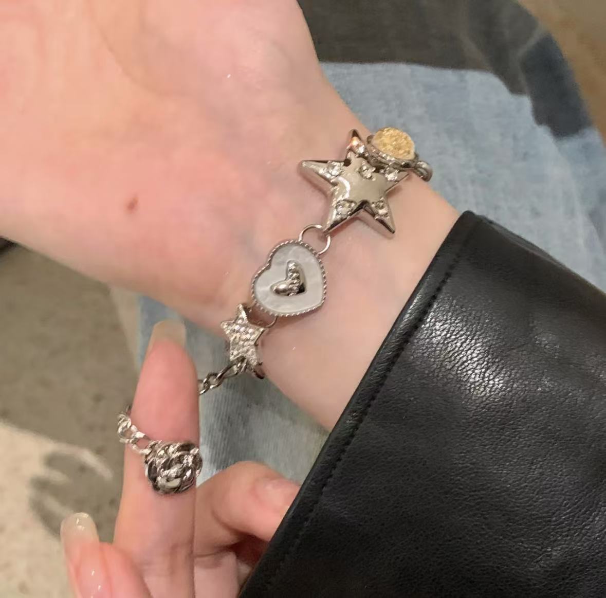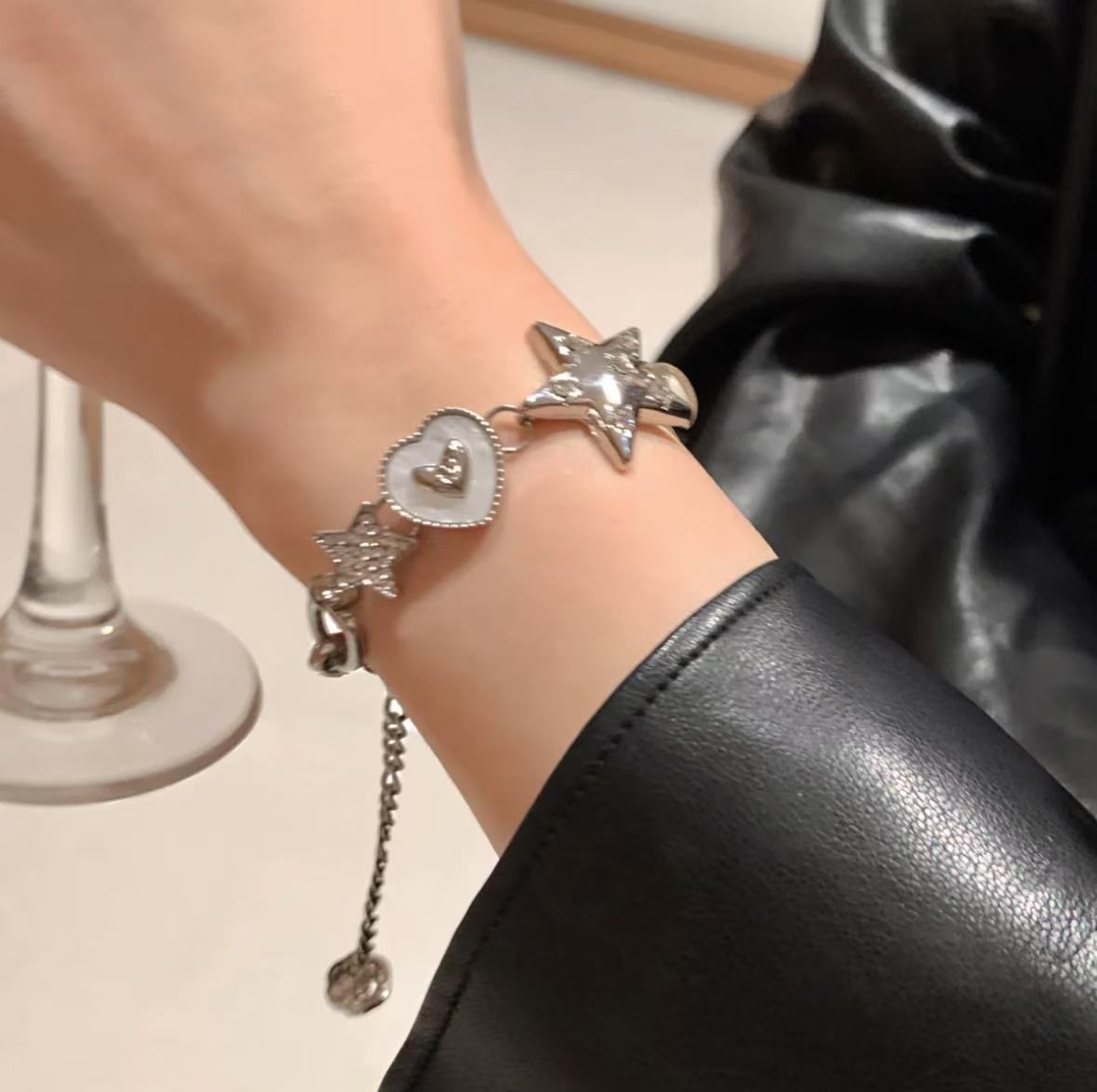 メタリックスターラブボタンヘビーデューティーブレスレット、ハイエンド、絶妙、多用途、甘いニッチ、軽い高級デザインアクセサリー