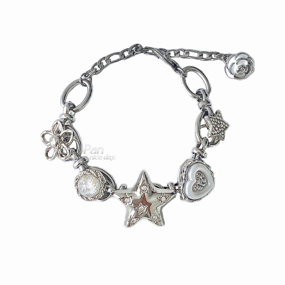 Stars Heavy Industry ポイントドリルスターラブボタンブレスレット韓国スタイルライトラグジュアリーメタリックライトラグジュアリーブレスレット女性用