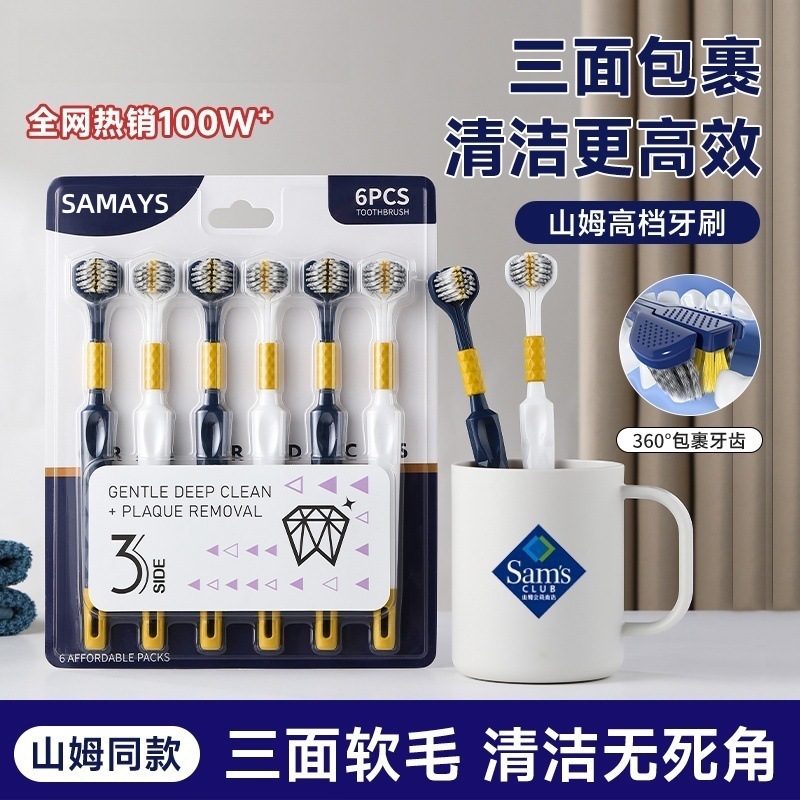 大人用歯ブラシ 三面柔らか毛歯ブラシ 大人用 3ヘッド歯間舌苔 カップルクリーニング 高級学生 家庭用
