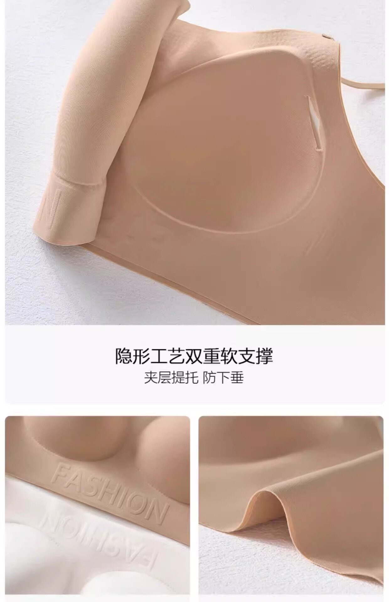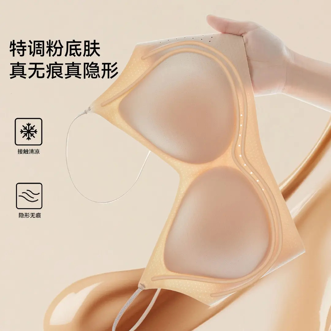 隐形无痕内衣女内搭肉色粉底液胸罩聚拢防下垂提拉无钢圈美背文胸