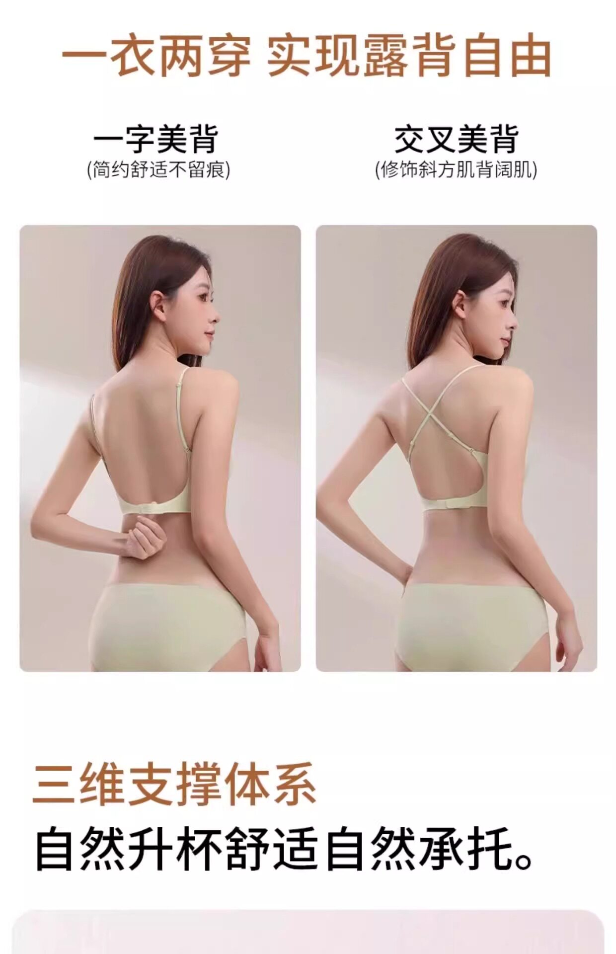 正版美背文胸无痕露背聚拢大u型挂脖吊带隐形粉底液细肩带内衣女