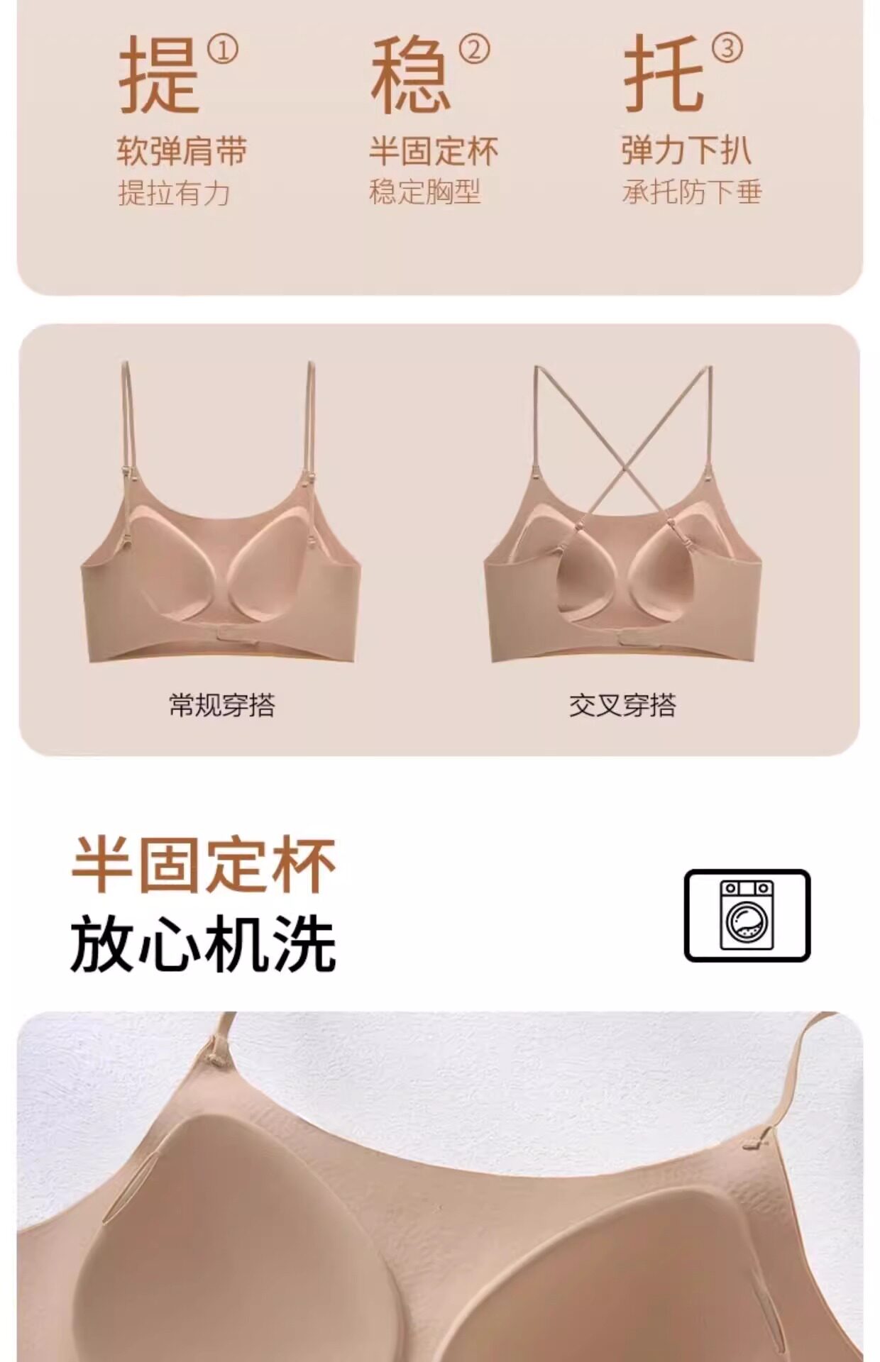 山茶花凉感超薄无痕透气内衣女细肩带软支撑固定吊带美背心式文胸