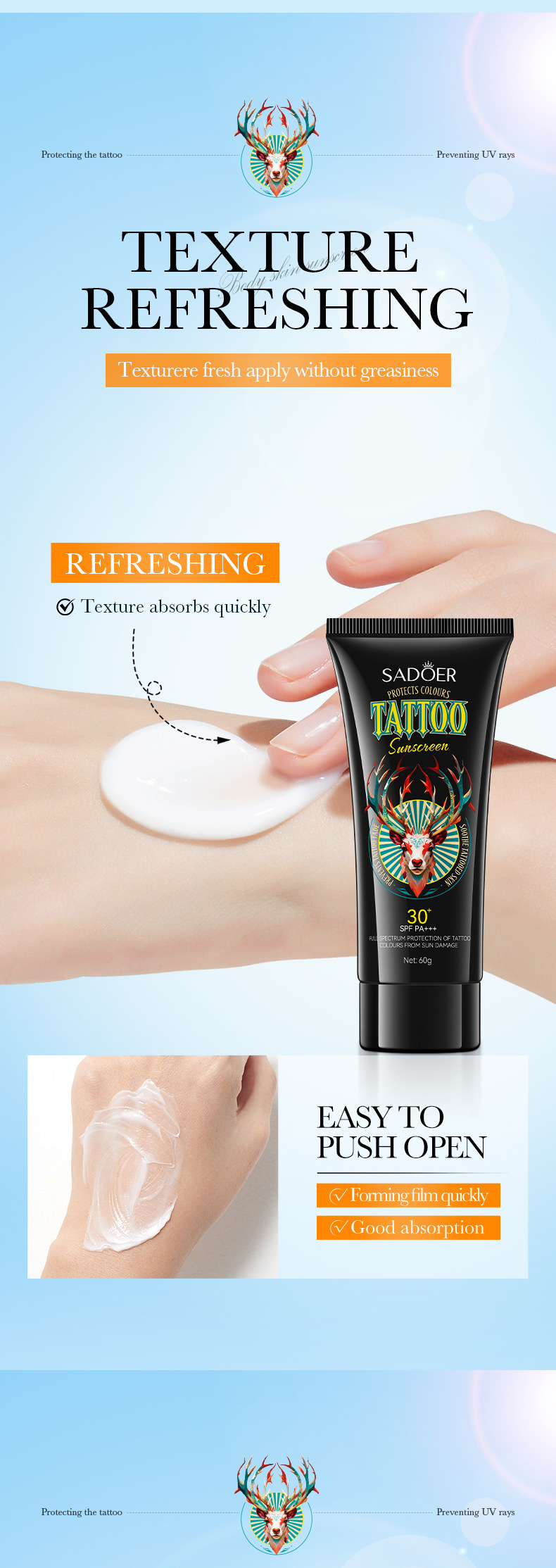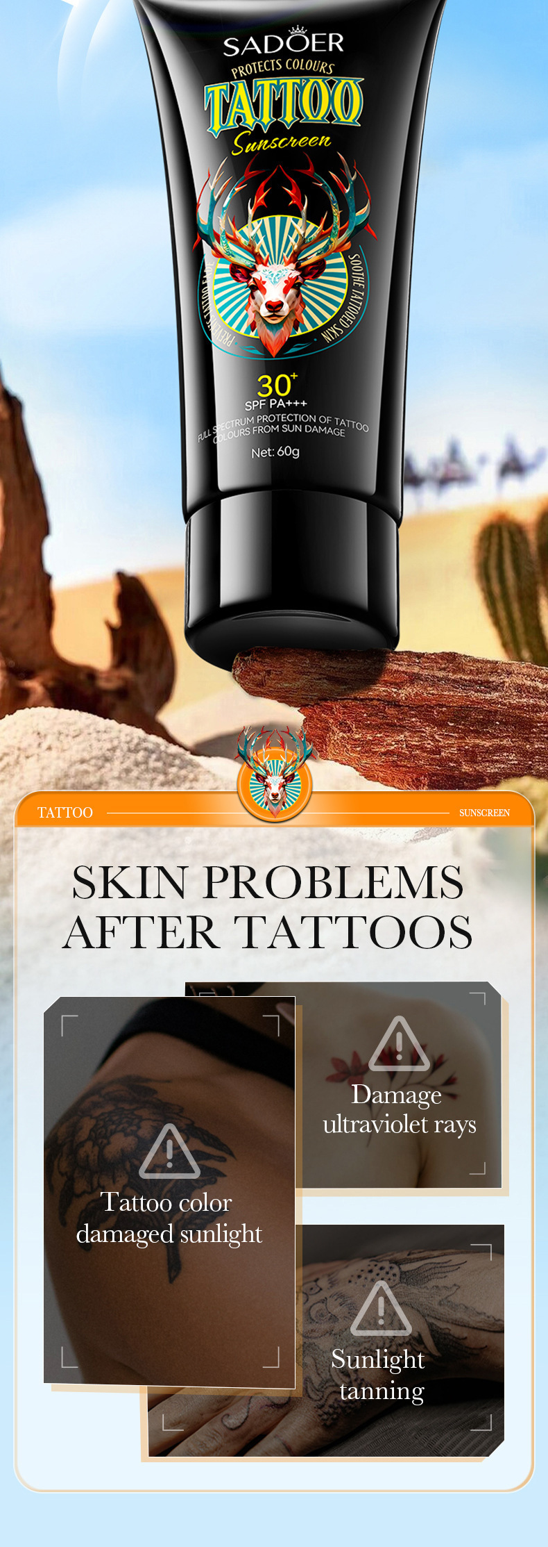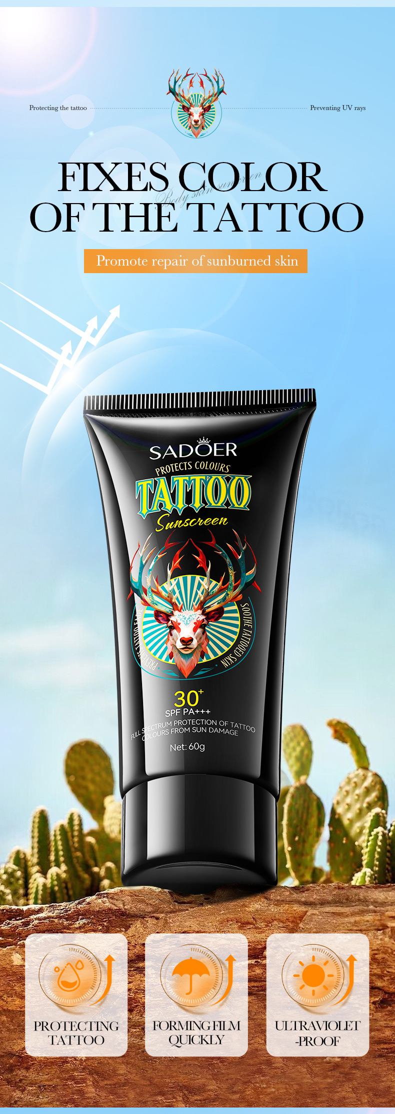 完全英語日焼け止め SADOER タトゥーカラーケア日焼け止め UVカット 越境貿易卸売 1