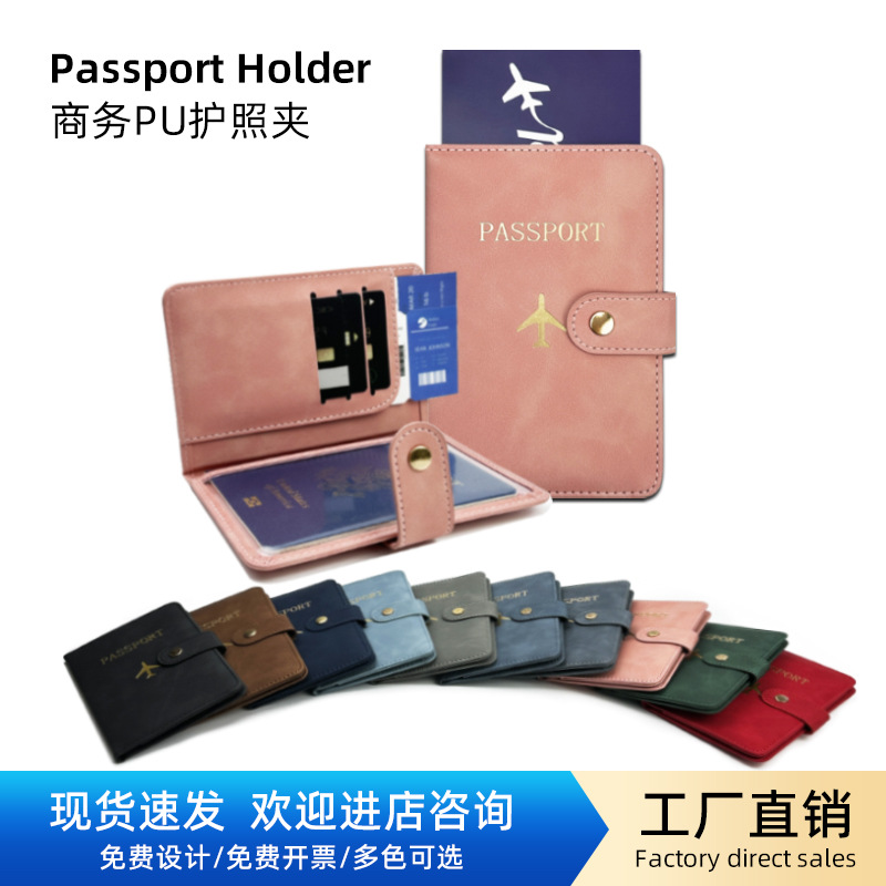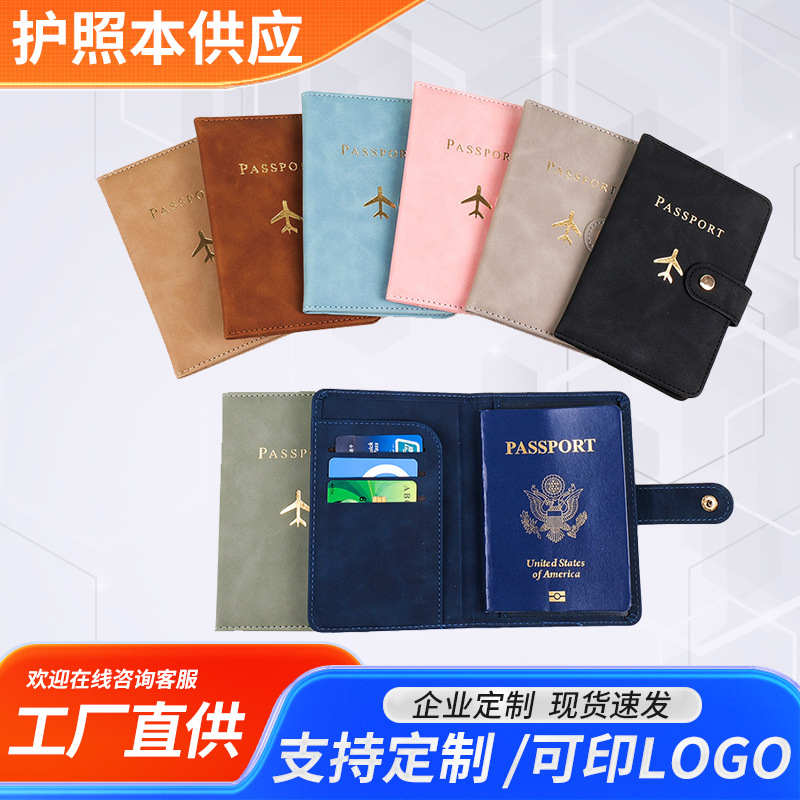 現物卸売りクロスボーダー箔押し飛行機はpu皮革旅行パスポート保護カバー収納皮質証明書バッグクリップを厚くした