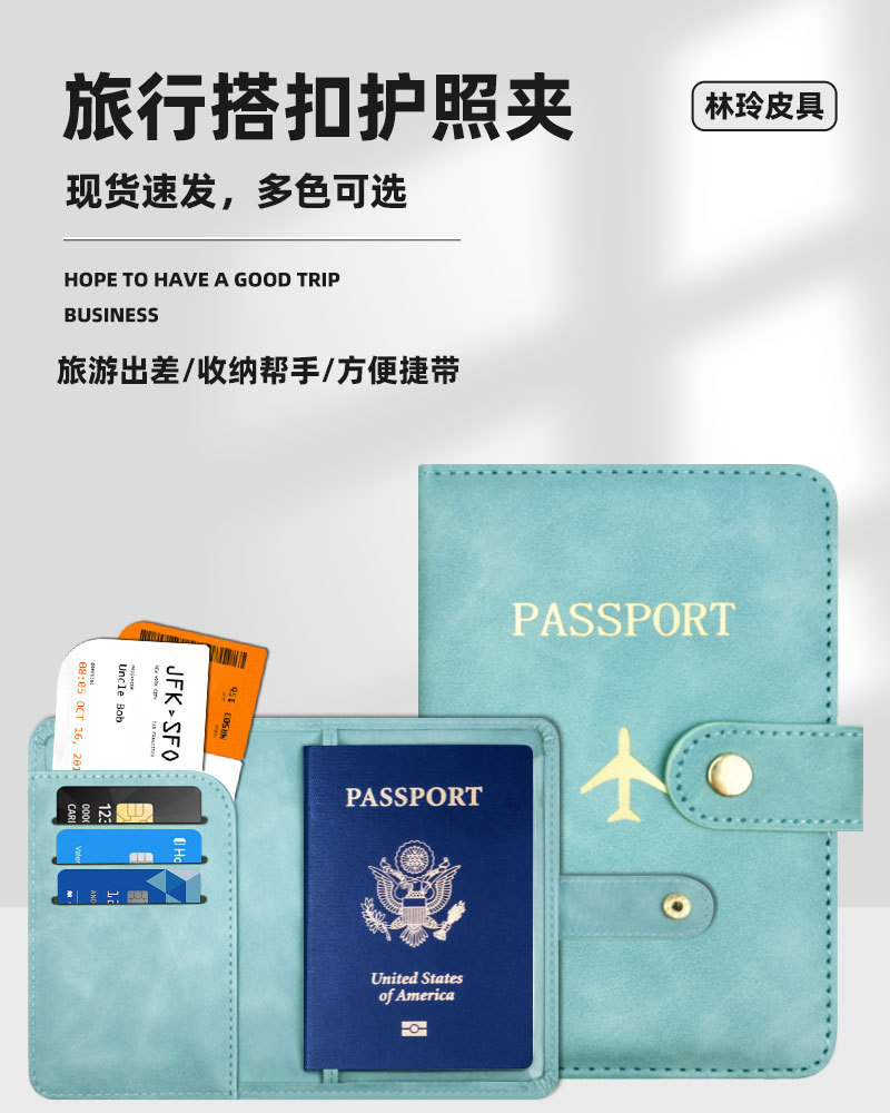 跨境肤感pu皮革护照夹包边手工车缝线皮质护照保护本套搭扣护照包