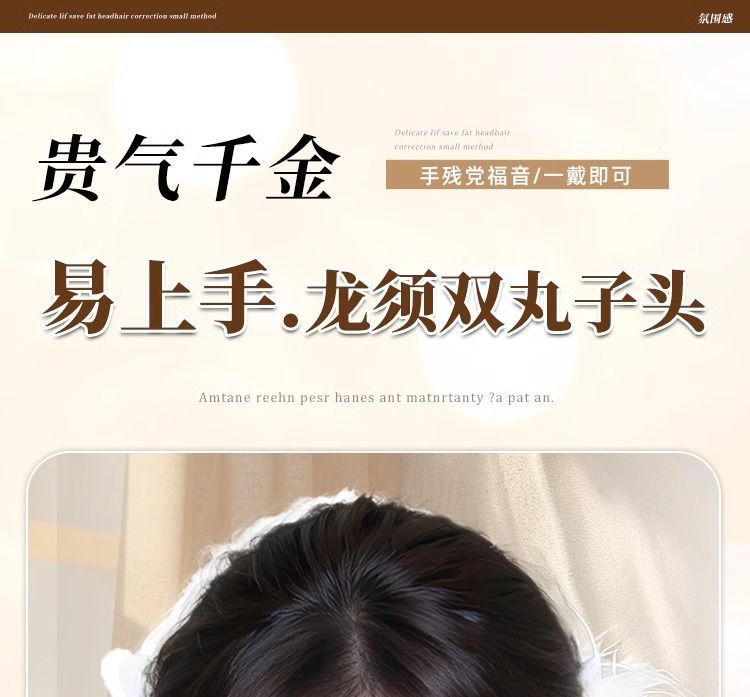 龍ひげ玉頭かつらクリップ、優しいサイドタイヘアアーティファクト、ふわふわ増量人工ヘアパッケージ、つぼみヘア