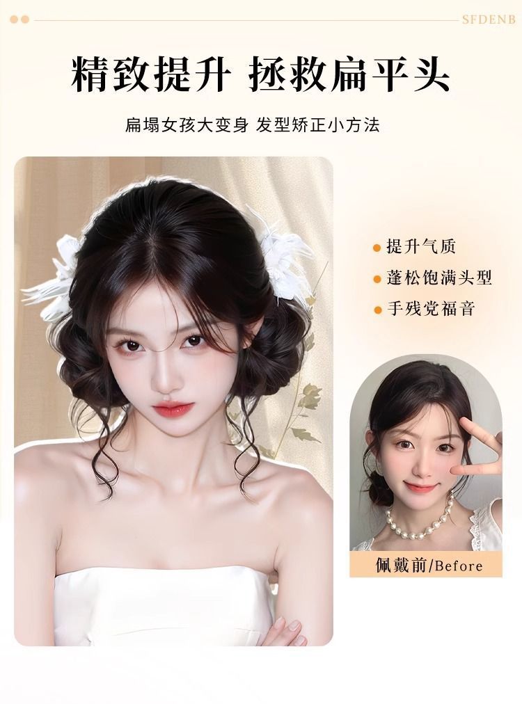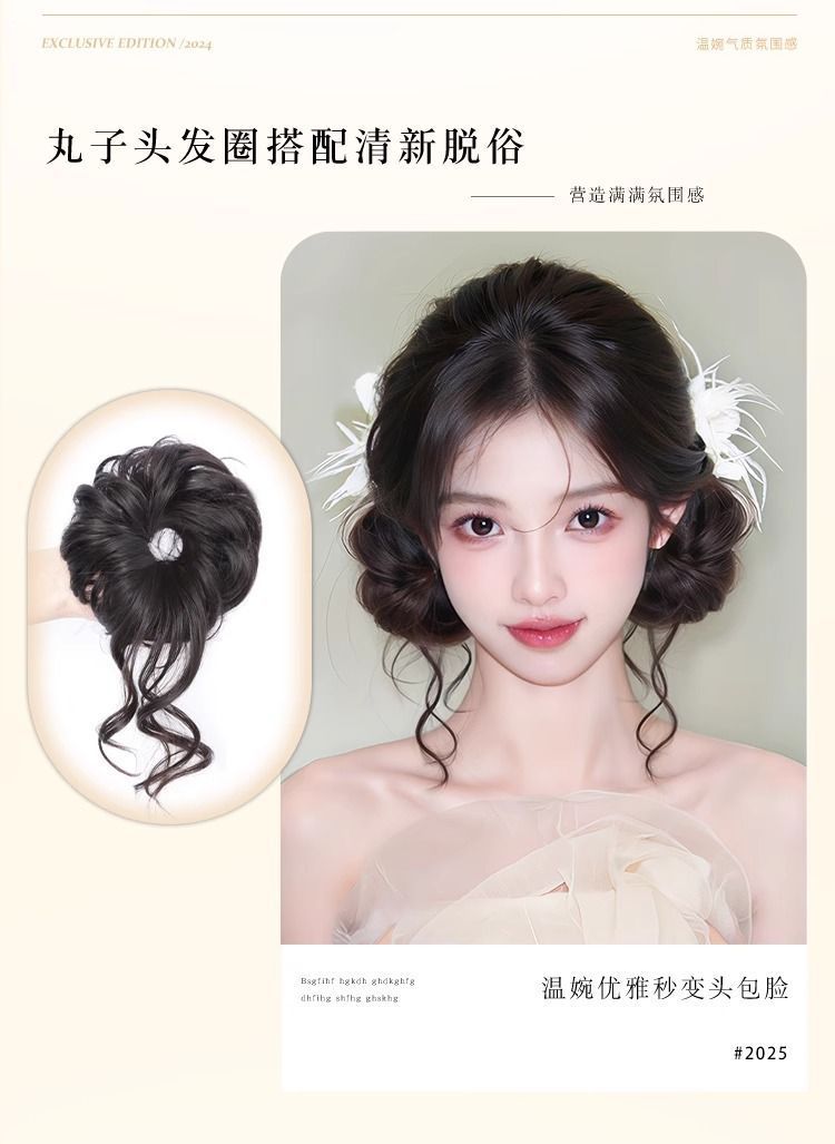龍鬚丸子ヘアゴム ウィッグ風ヘアバンド 自然なボリュームアップ ふんわり花包頭 らくらくヘアスタイリング ヘアアクセサリー 在庫あり