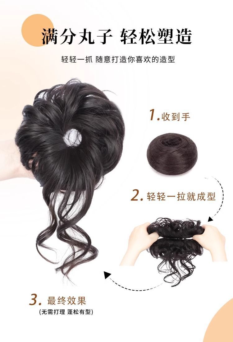 龙须丸子头假发发圈自然蓬松仿真发低扎盘发花苞头高颅顶发包假发