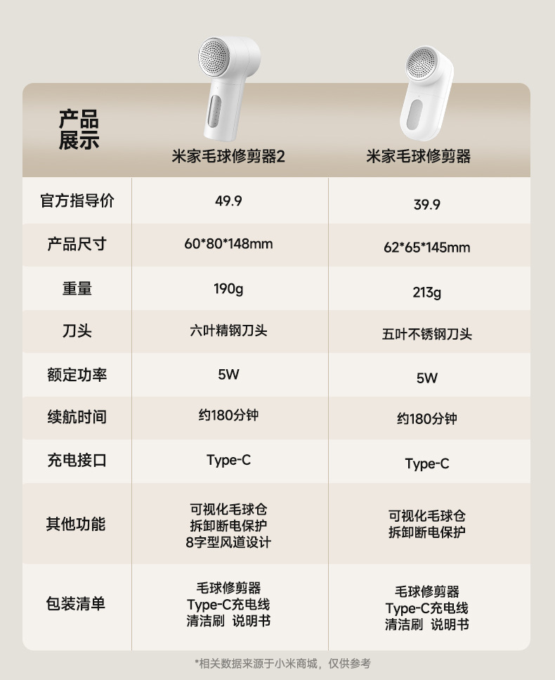 适用于米家毛球修剪器 充电式家用便携衣物除毛机除毛球神器不伤