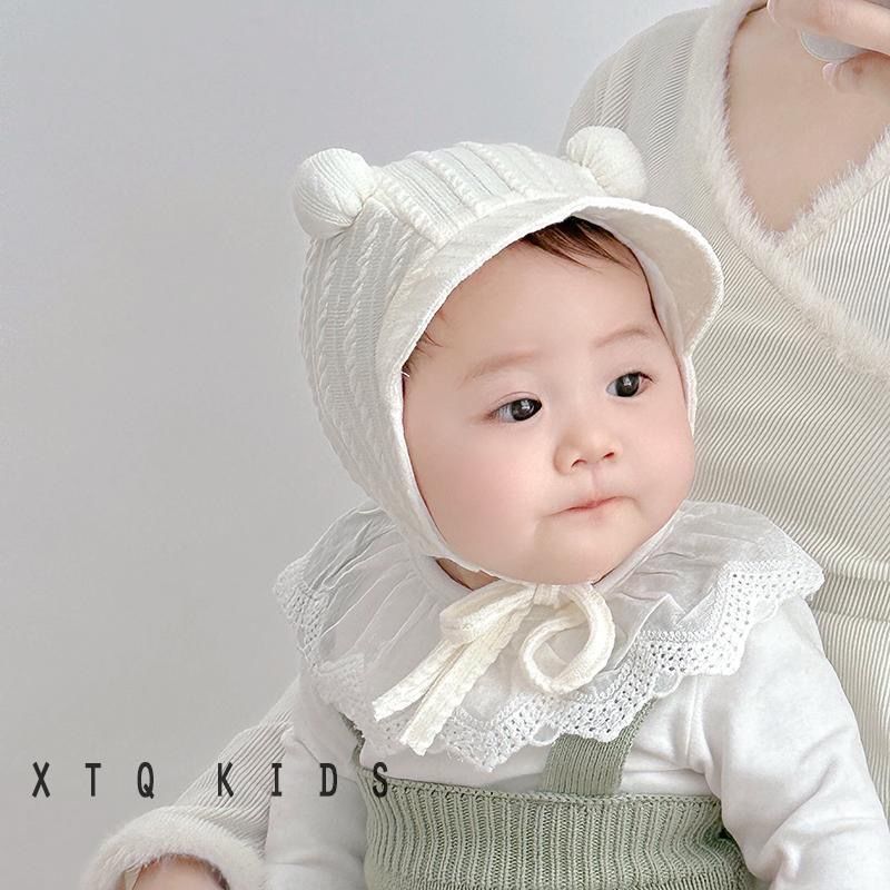 ベビー帽子秋冬小月齢かわいい超萌え保温男女赤ちゃん耳保護ウール帽子純色潮