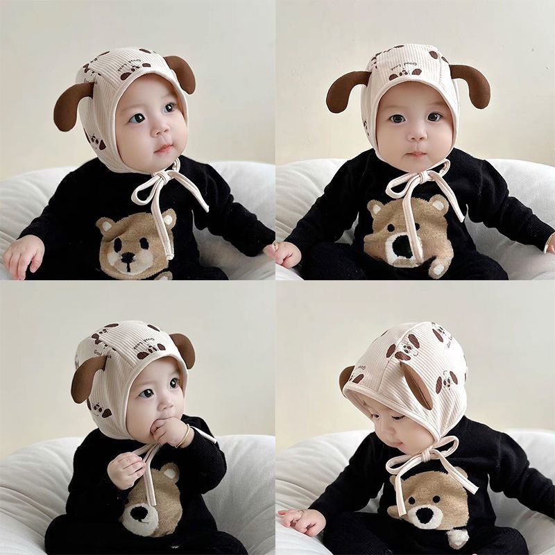 婴儿帽子春秋纯棉可爱小狗婴幼儿护耳帽男女宝宝包头帽保暖