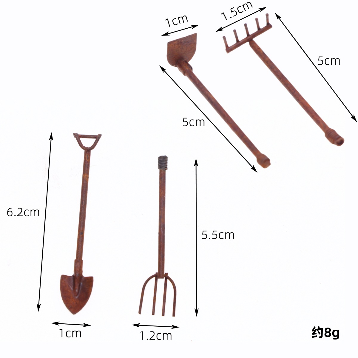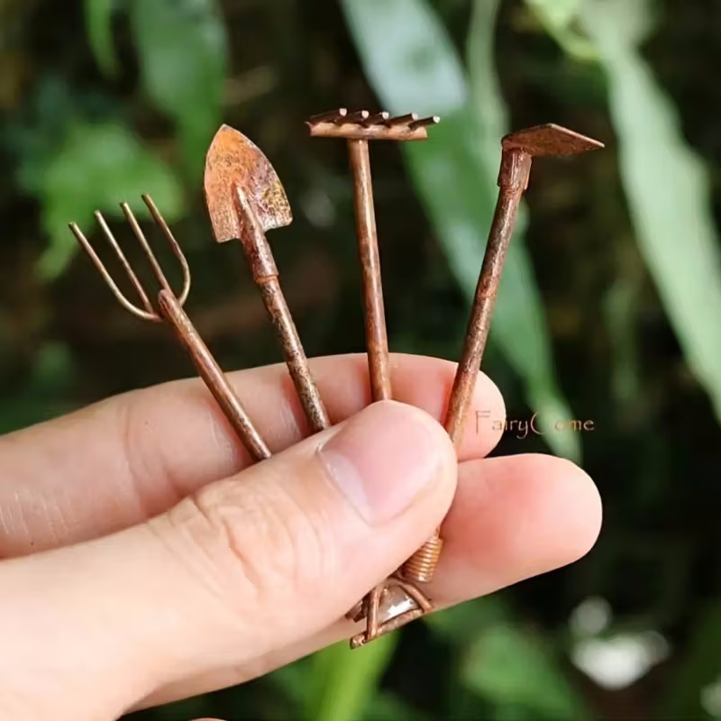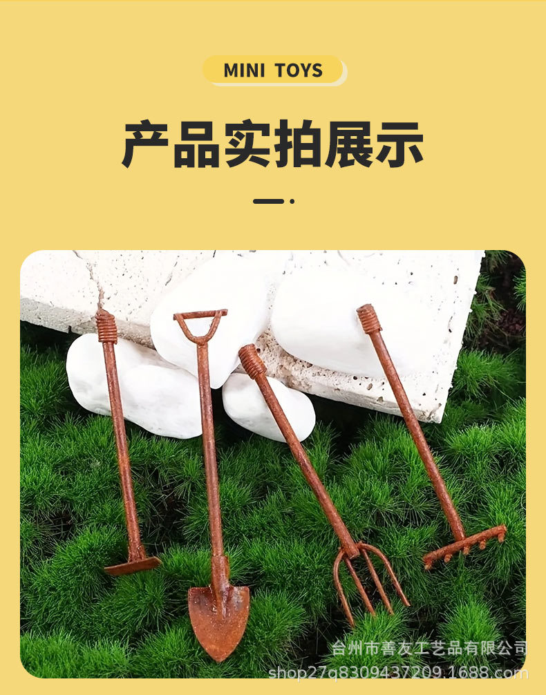 娃娃屋迷你仙女童话花园微缩锈色锄头铲子微景观复古金属园艺工具