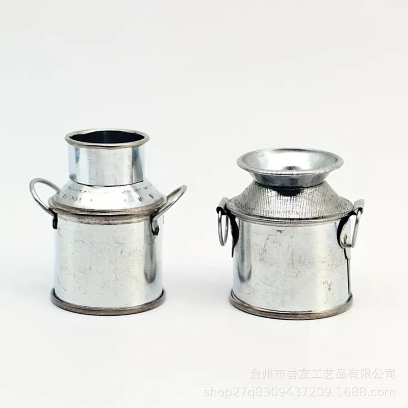 娃娃屋迷你金属小奶壶铁皮桶插花园Dollhouse微景观袖珍家居饰品