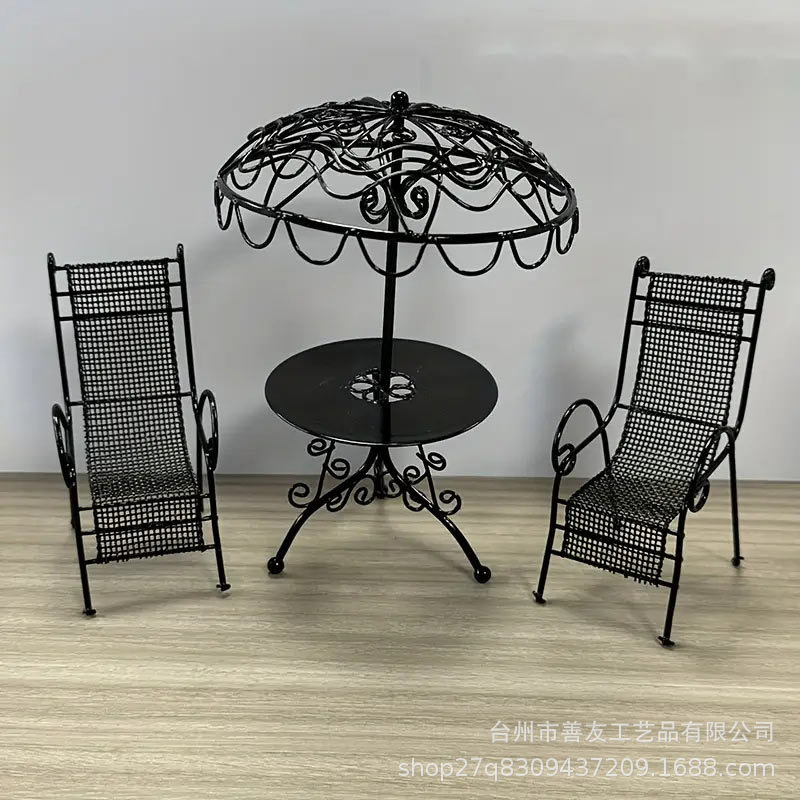 メーカーから直接供給されるミニチュア食品おもちゃモデルシーンドールハウスアクセサリーミニガーデンテーブルと椅子パッケージ金属装飾品