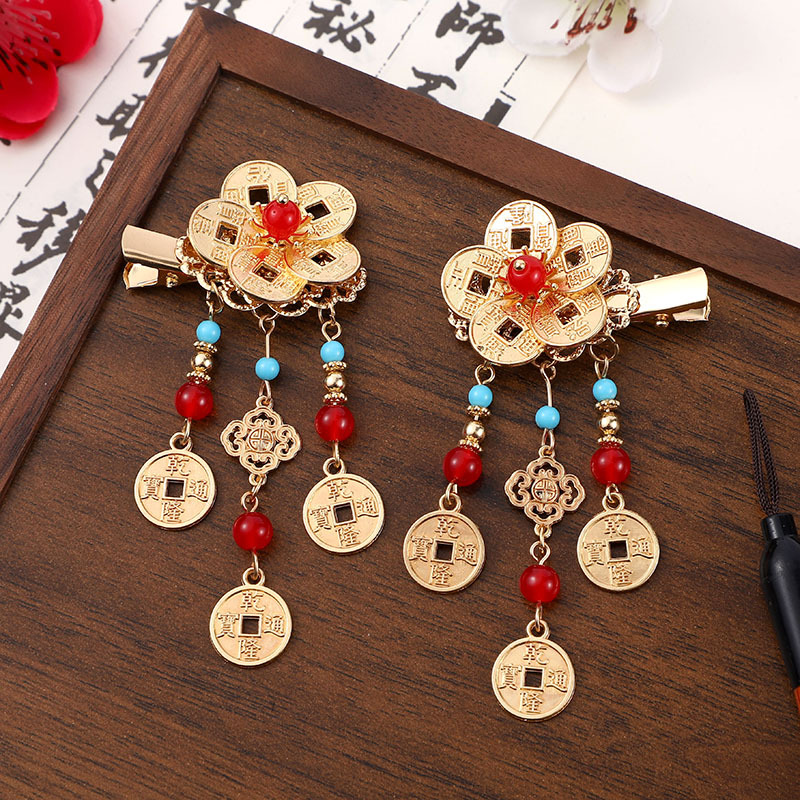 レトロ多用途アンティーク銅コインヘアアクセサリーマネーヘアピンサイドクリップ古代衣装漢服ヘアピン中国の帽子アクセサリー