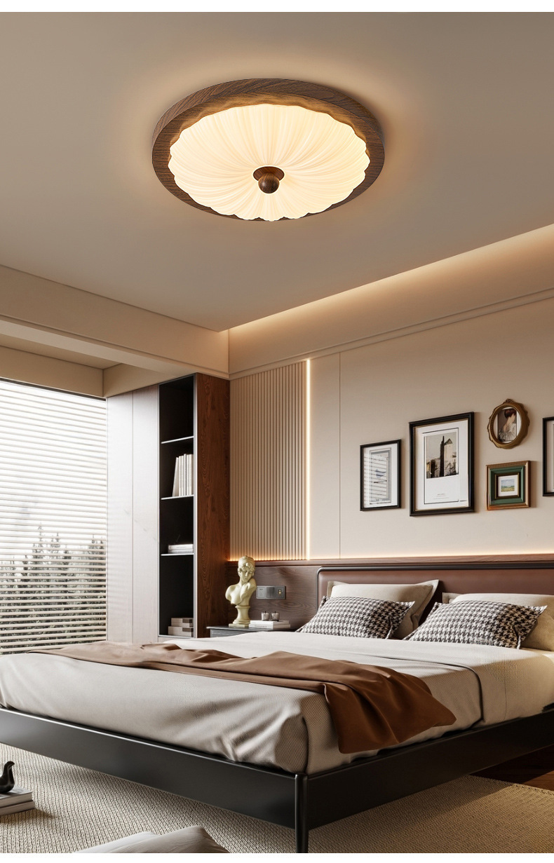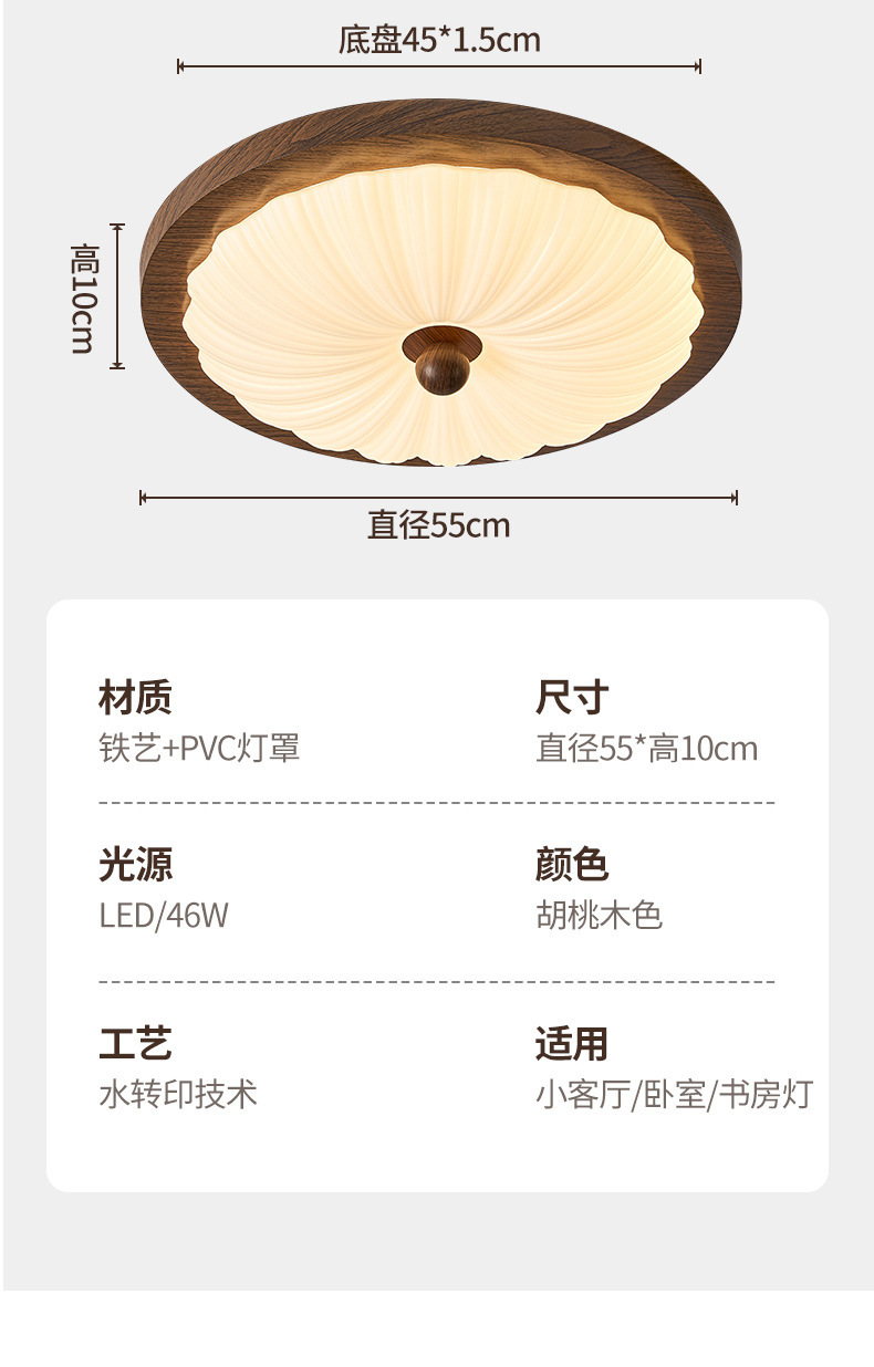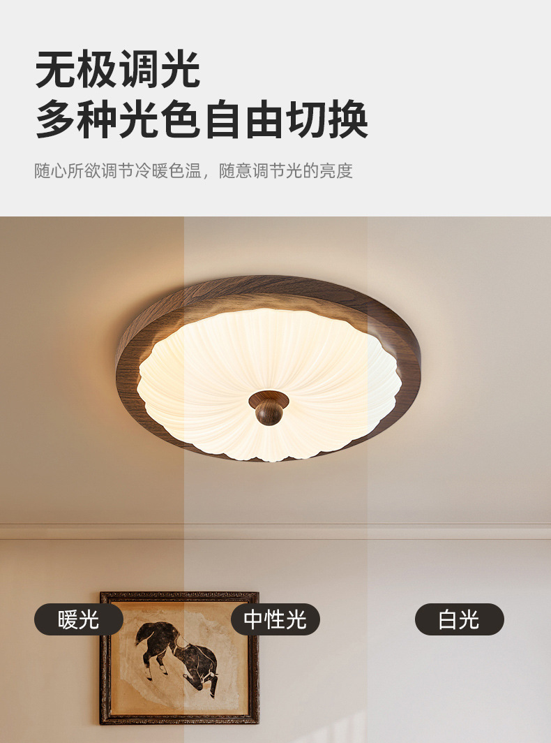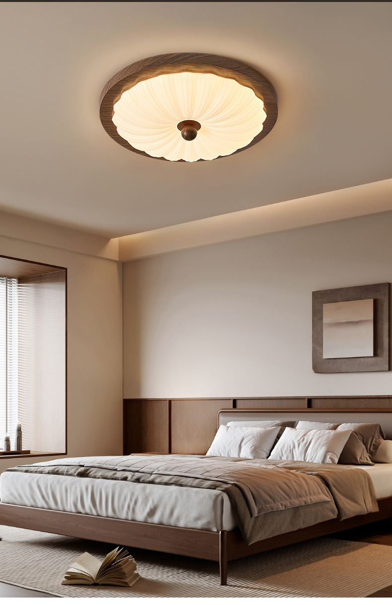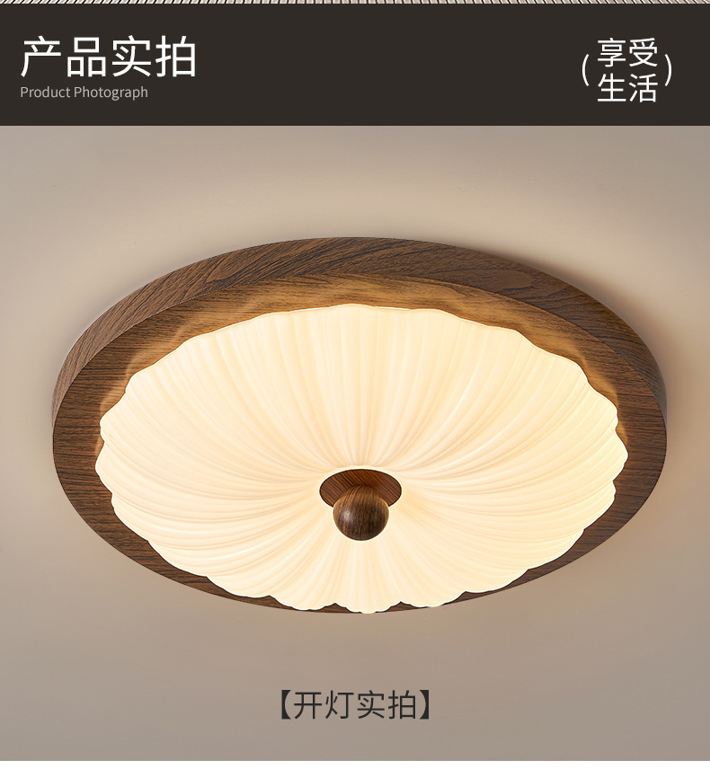 中古风卧室吸顶灯胡桃木色复古侘寂风高级胡桃木色书房护眼吸顶灯