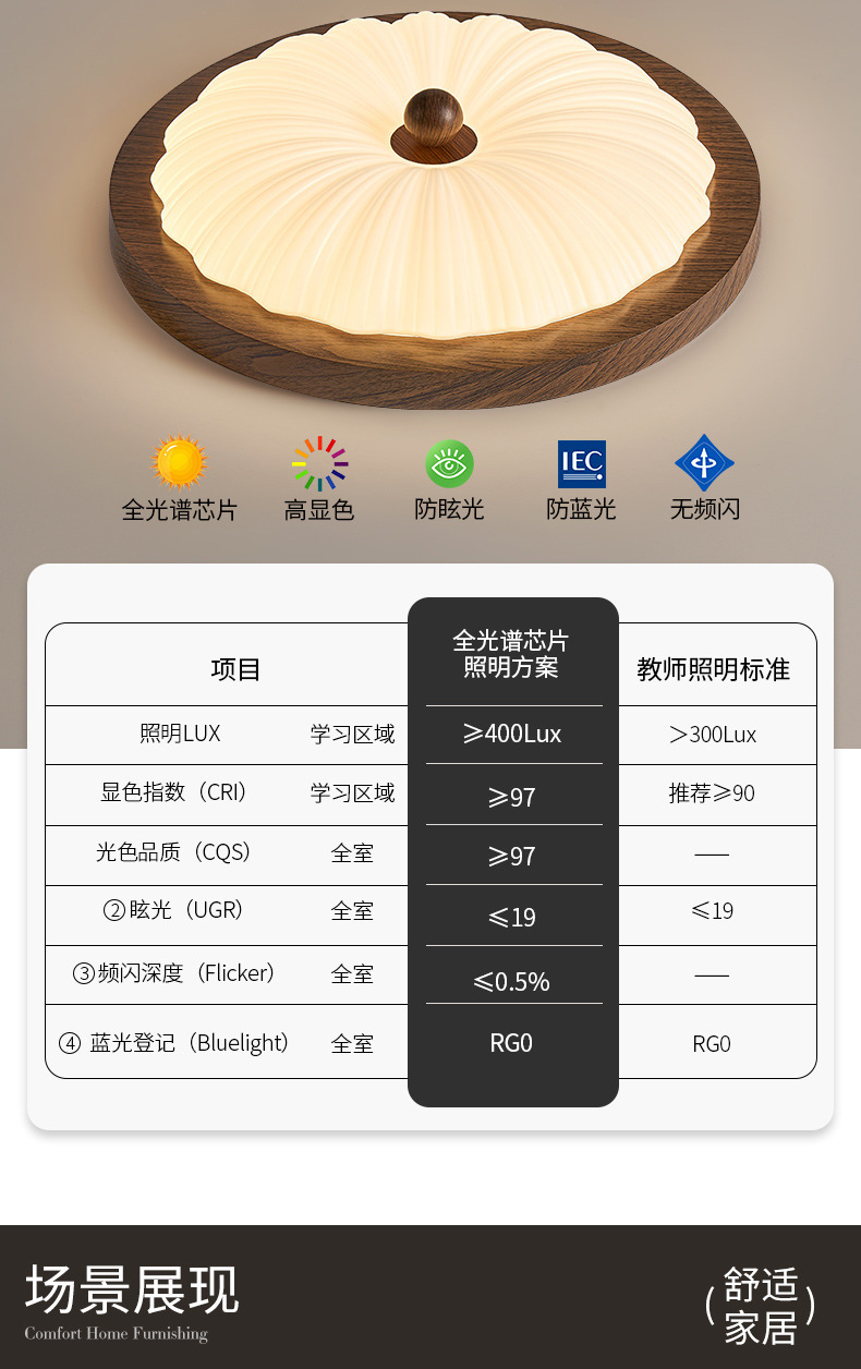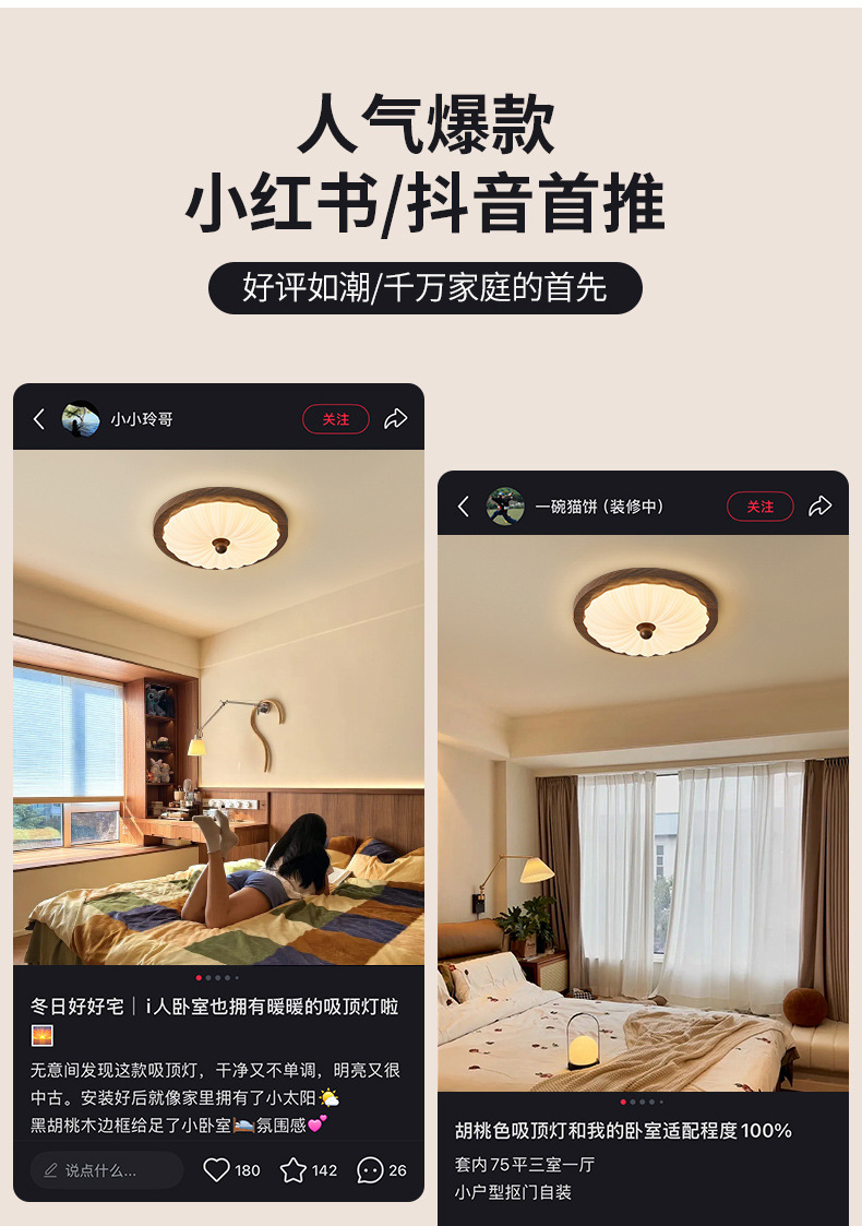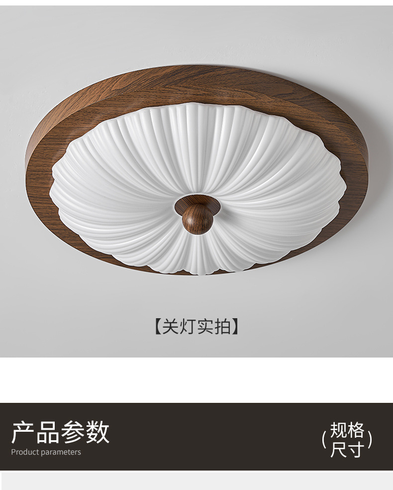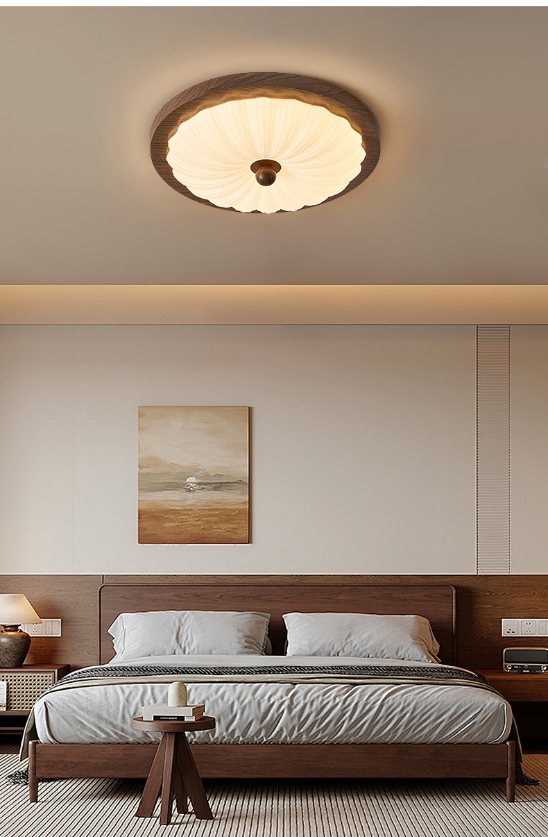 中古风卧室吸顶灯胡桃木色复古侘寂风高级胡桃木色书房护眼吸顶灯
