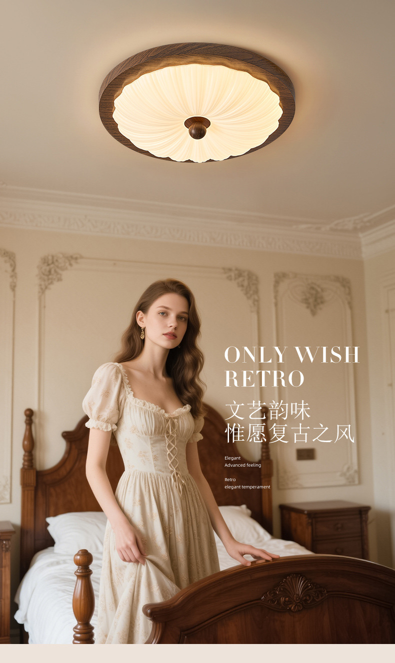 フランスの中古風寝室の天井灯2025年の新型の胡桃の木の色の目の高級な部屋のガラス灯