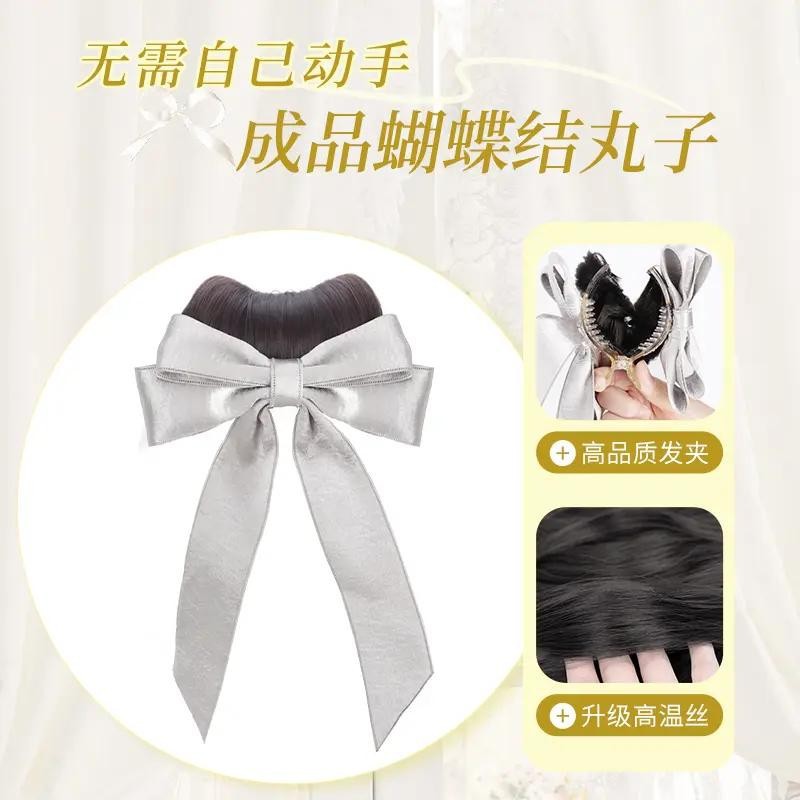 女性用ボールヘッドウィッグ、模擬ヘアリボン、ハイタイクリップ、花のつぼみヘアアクセサリー、多用途ヘアアーティファクトウィッグバッグ