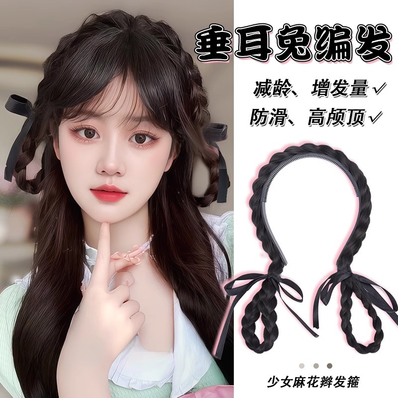 魚骨編み込みヘアバンド 女性用 ツイストヘアバンド 頭頂部を高くするアップグレード ヒョウタン編み込みヘアバンド 滑り止めヘアバンド ウィッグ