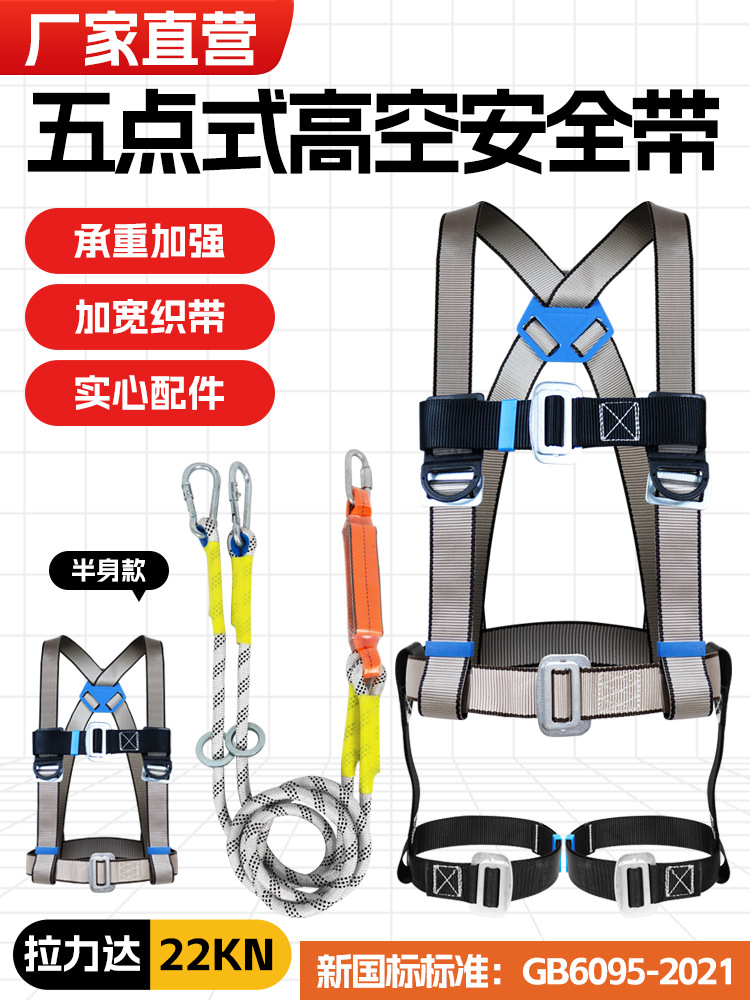国家標準高所作業用5点式全身ダブルバック半身安全ベルト建設用3点落下防止ロープセット