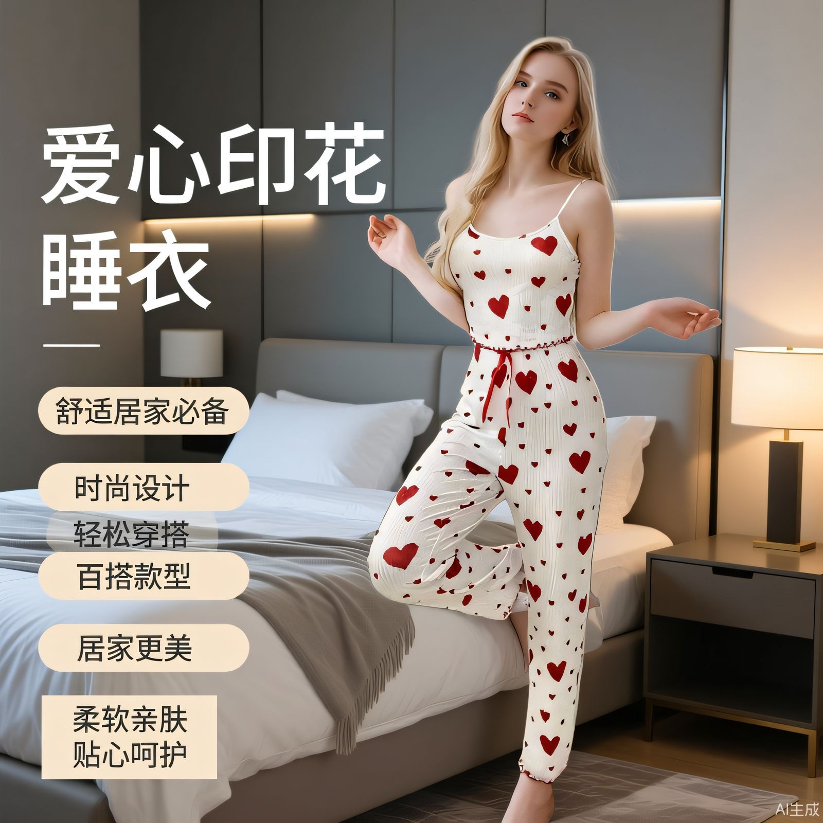跨境亚马逊春秋爆款热销欧美吊带女睡衣印花可外穿女士家居服套装