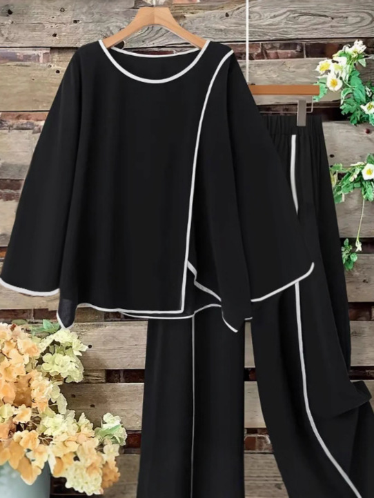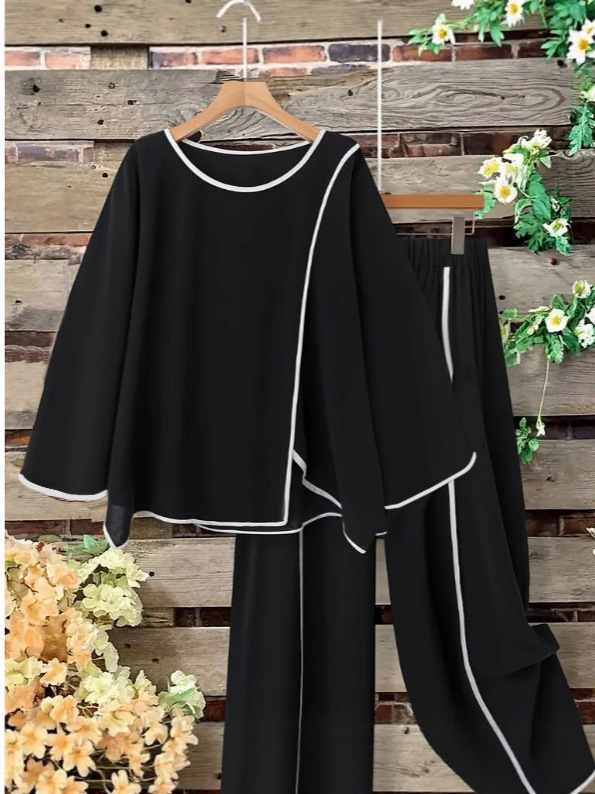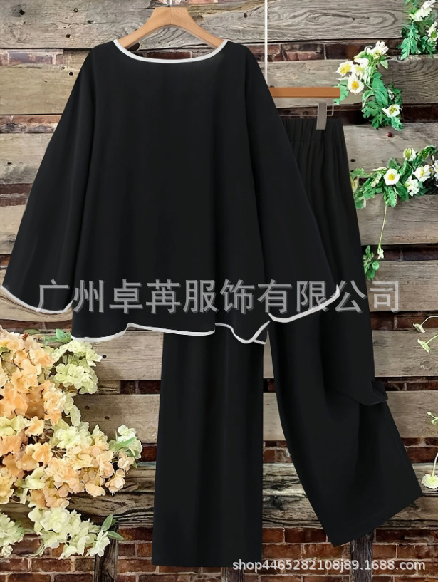 2025 ヨーロッパとアメリカのクロスボーダー大きいサイズウィッシュ AliExpress 新しい 2 ピースコンビネーションコントラストカラースポーツカジュアルクロップドパンツ夏