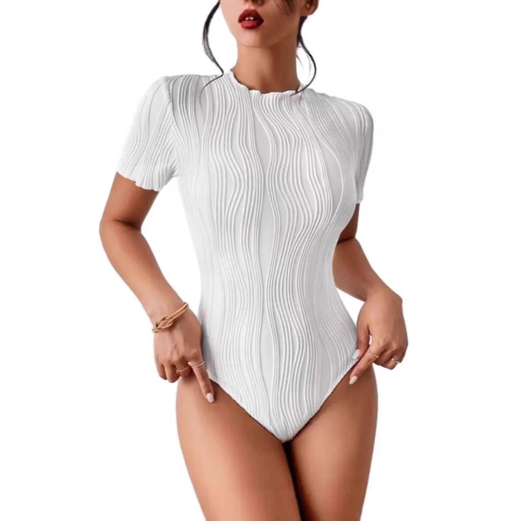 2025春夏アマゾン海老皮クロスボーダー欧米女装半袖波紋筋理連体服セクシー修身上着