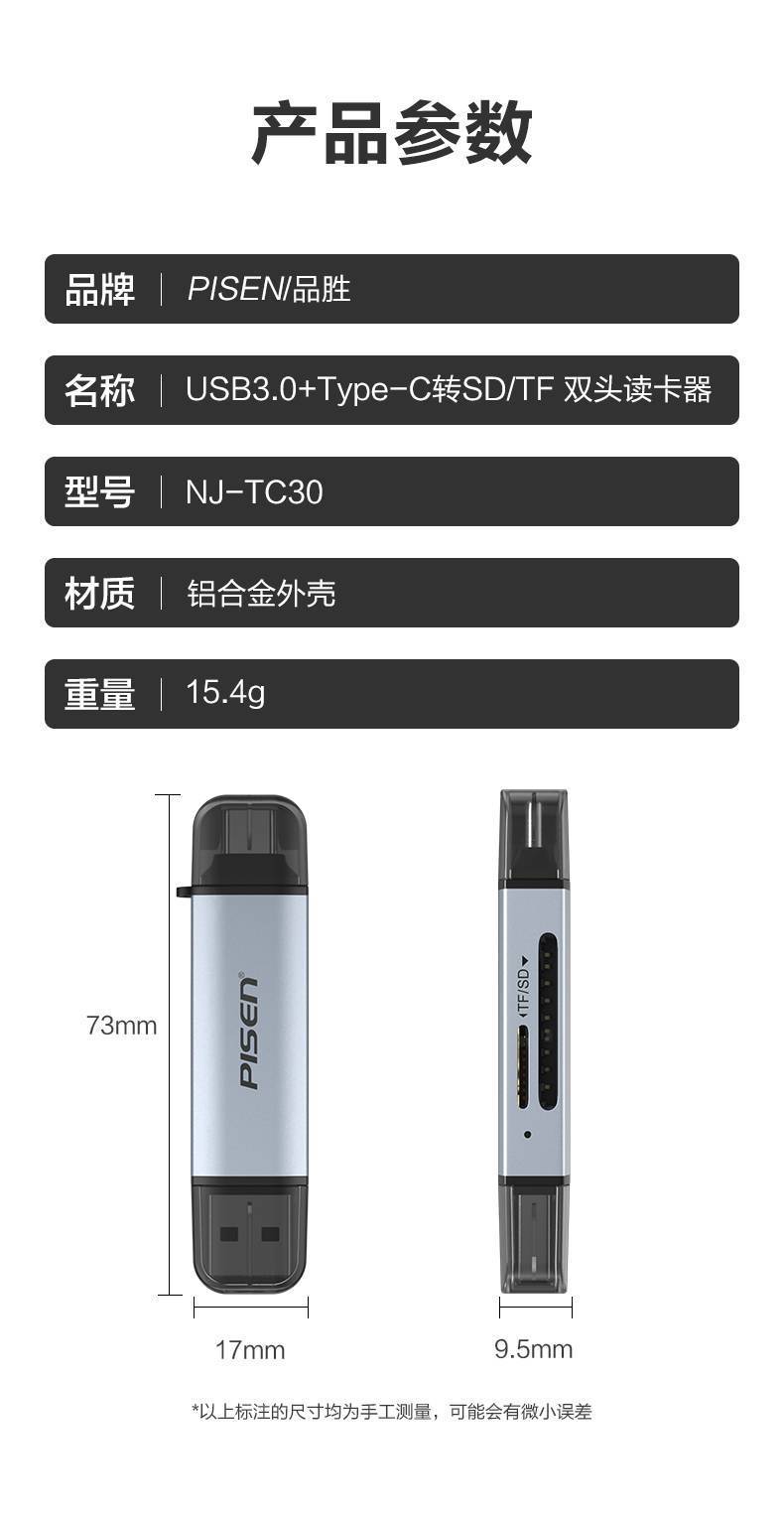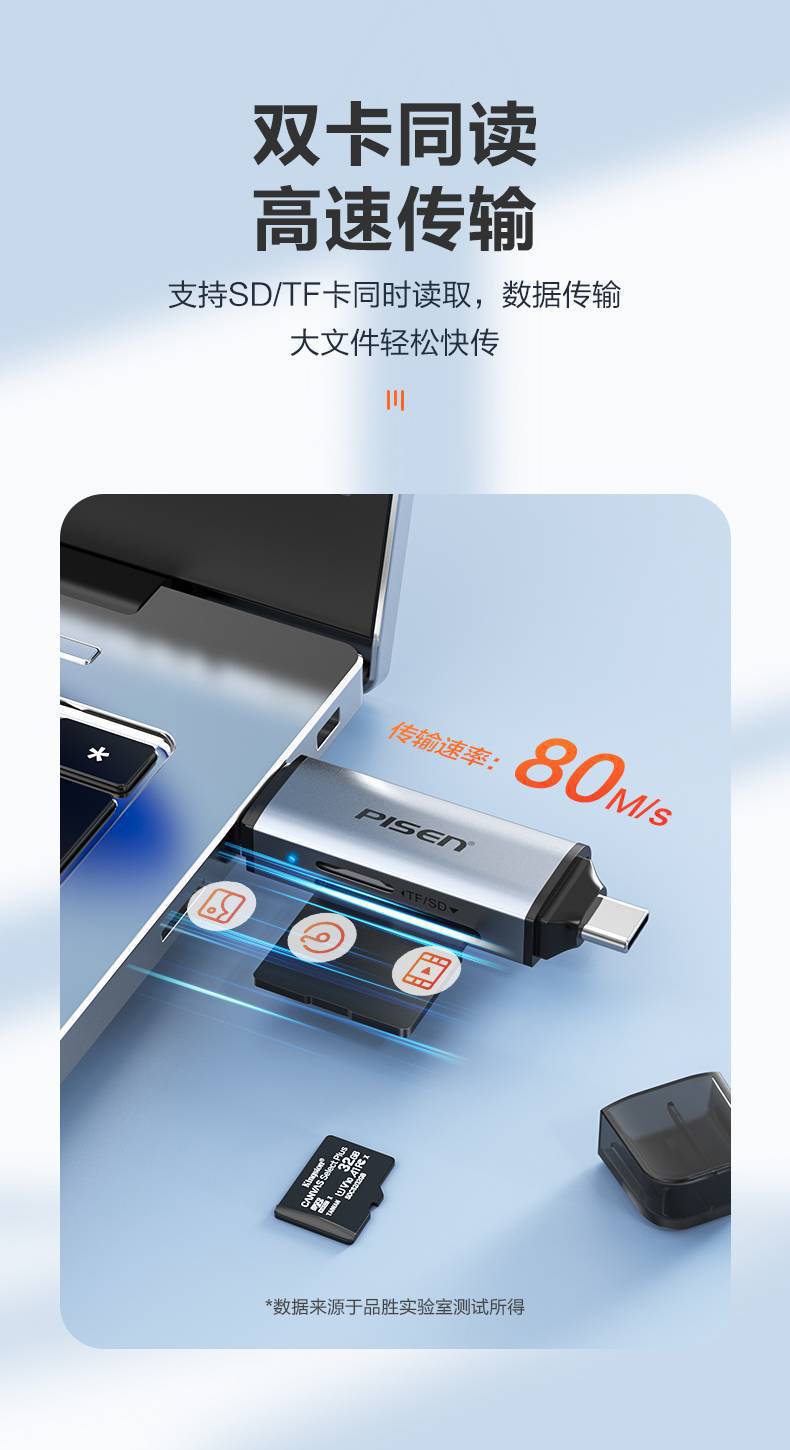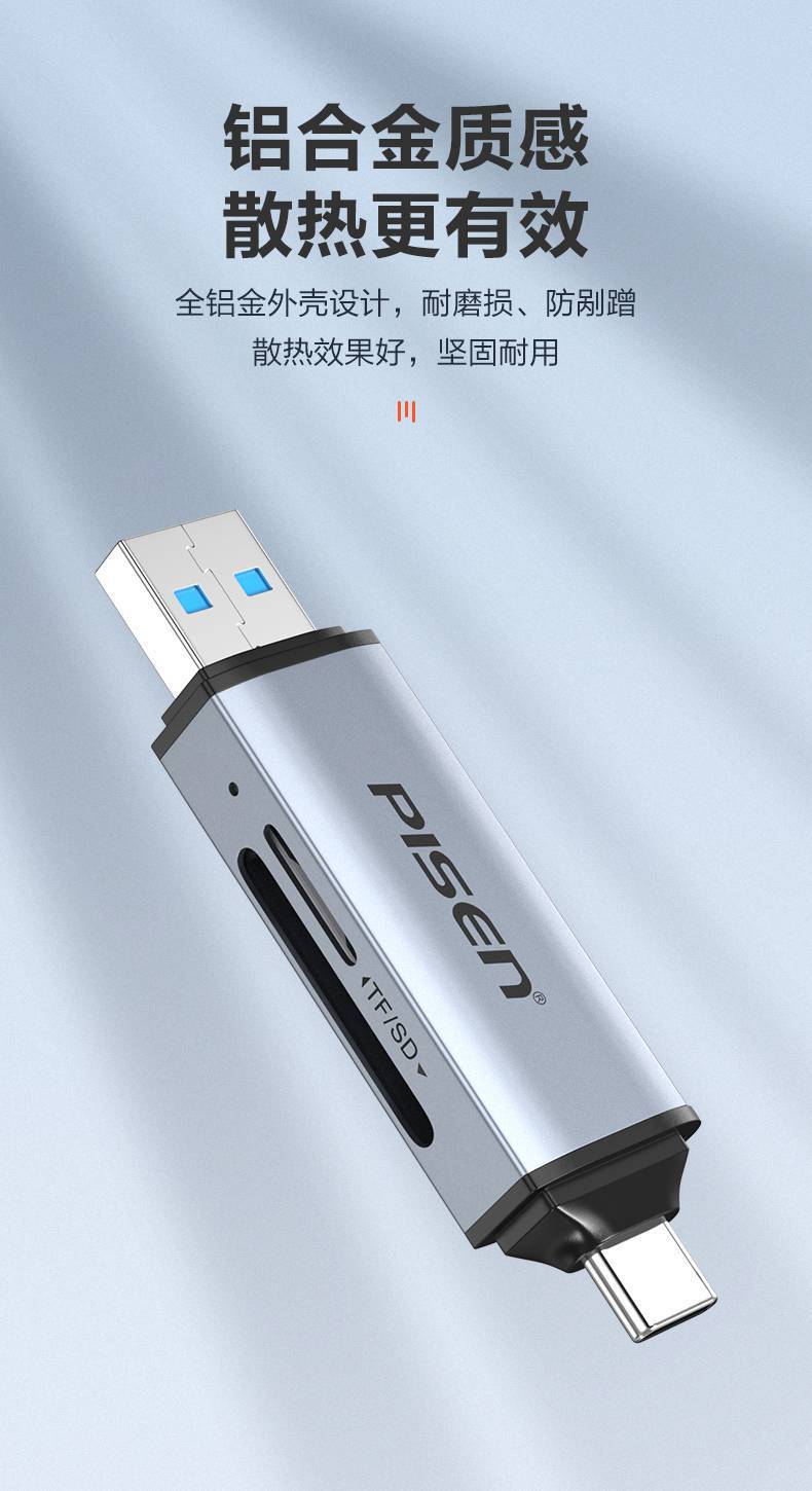 品胜usb3.0高速读卡器多合一sd/tf内存卡转换器安卓typec电脑两用