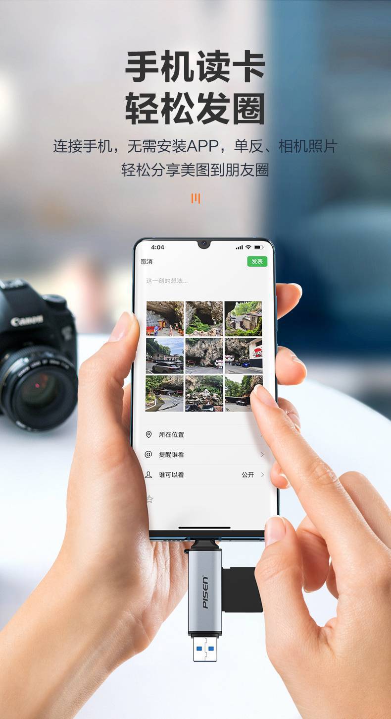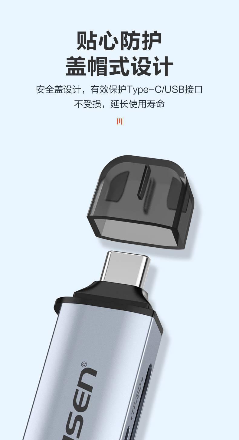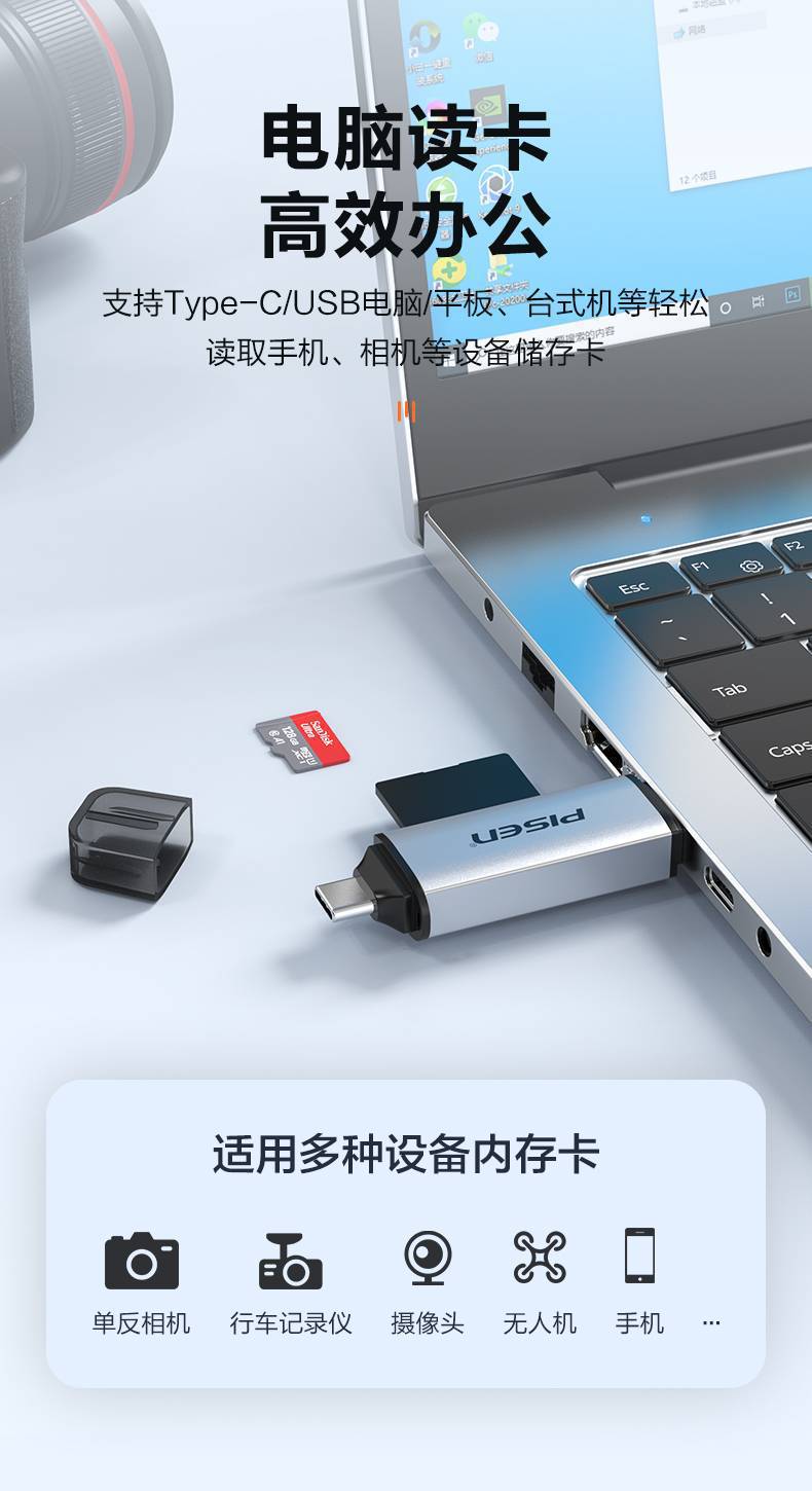 品胜usb3.0高速读卡器多合一sd/tf内存卡转换器安卓typec电脑两用
