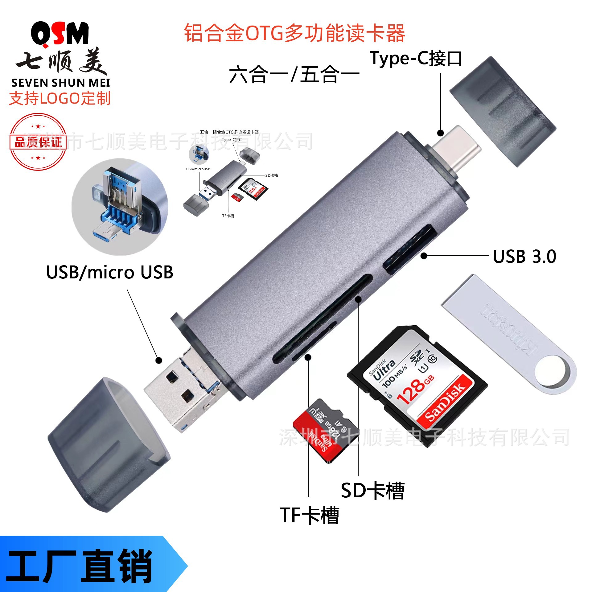工場直売アルミ合金六合多機能カードリーダーは携帯電話パソコンカメラTF/sdカードUに適している