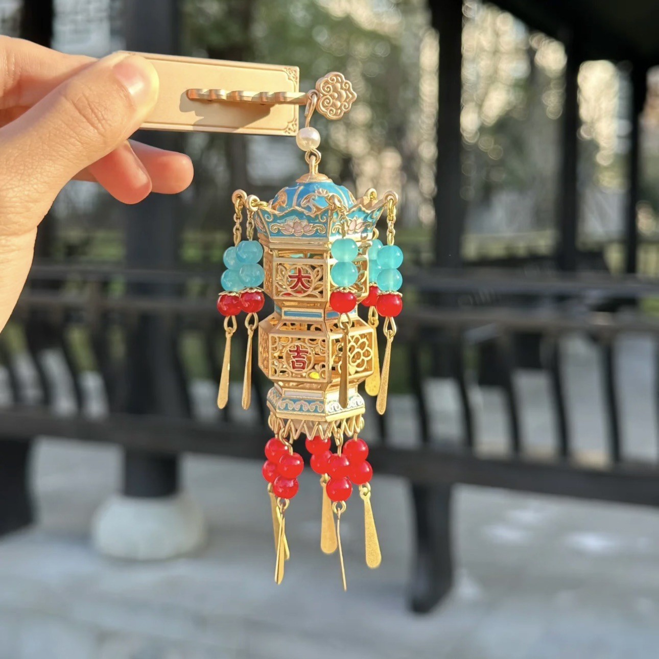 尚嘉古風模様のかんざしの穴が開いています。