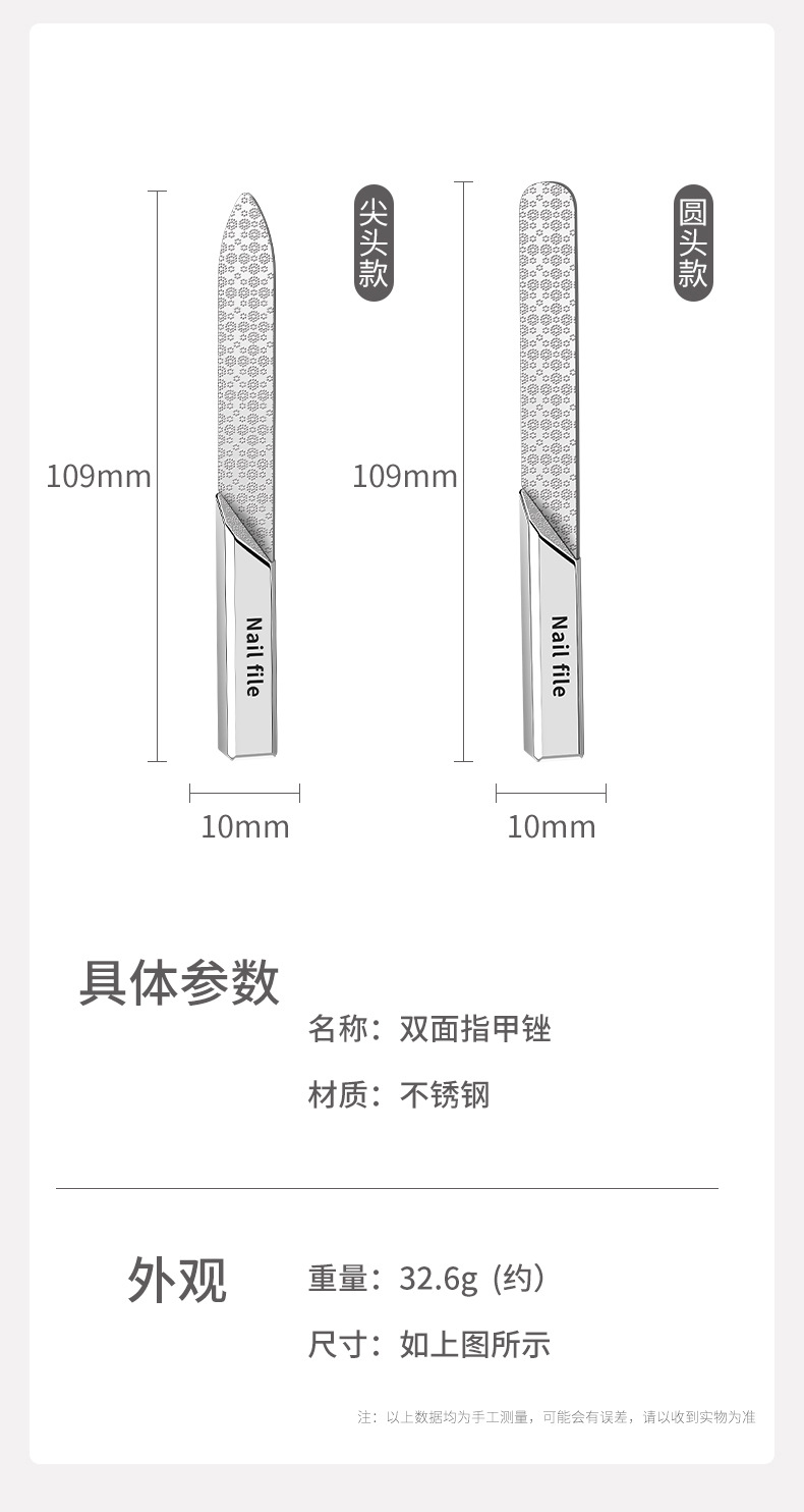 四面锉刀加长加厚美容不锈钢打磨边指甲锉刀修脚修甲美甲磨砂
