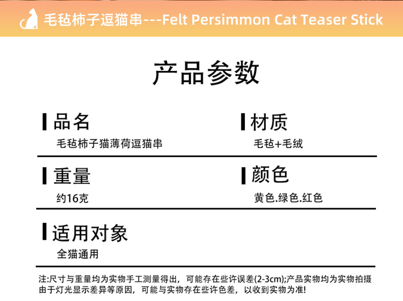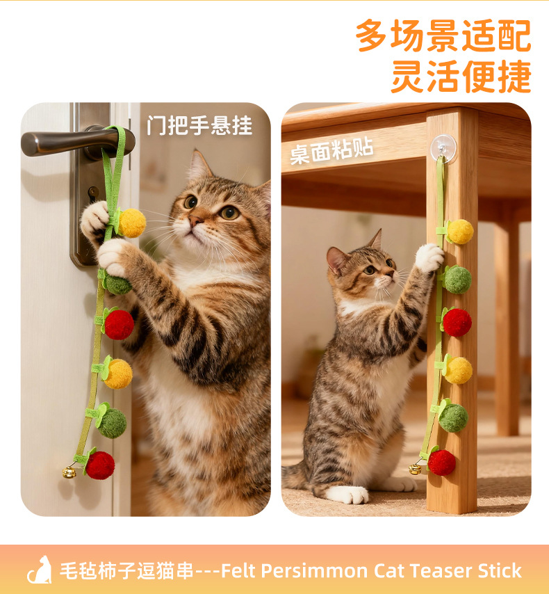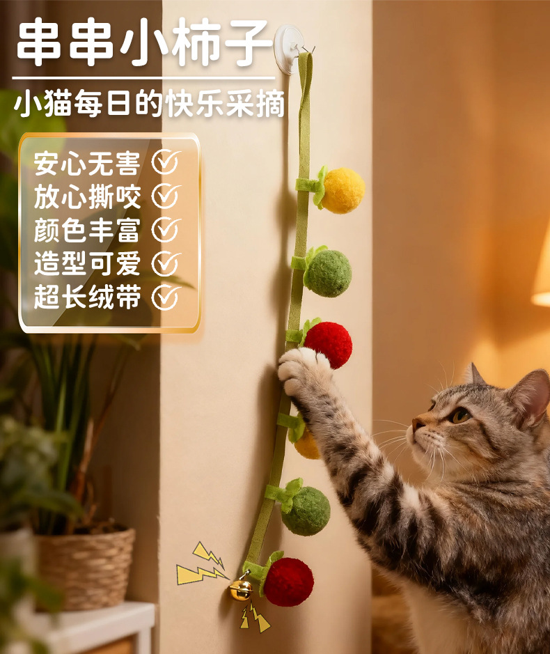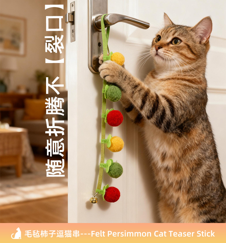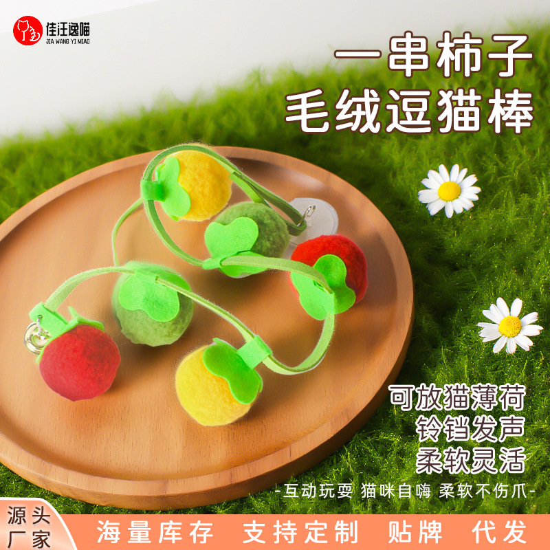 小柿子逗猫棒硕果累累玩具实木长杆耐咬猫咪自嗨解闷神器宠物玩具