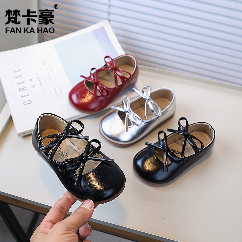 梵卡豪の女の子の蝶結びの王女の靴2025春秋の新型の子供のメアリー珍の小さい靴の柔らかい底のダンスの靴