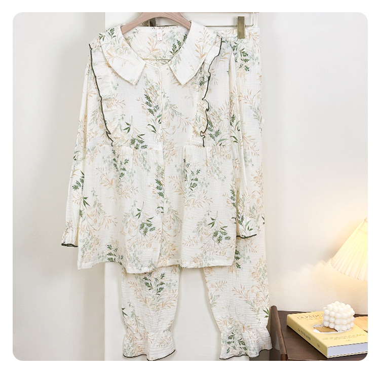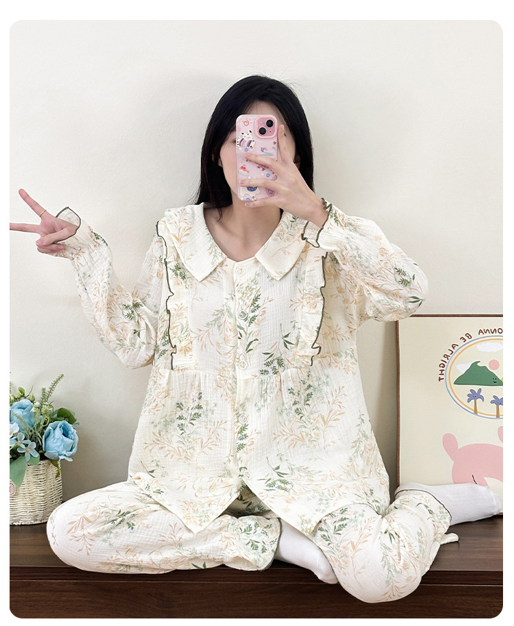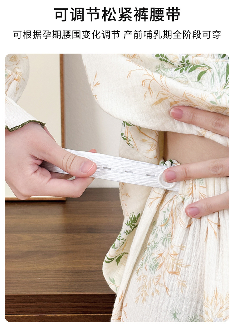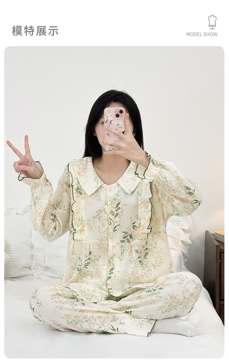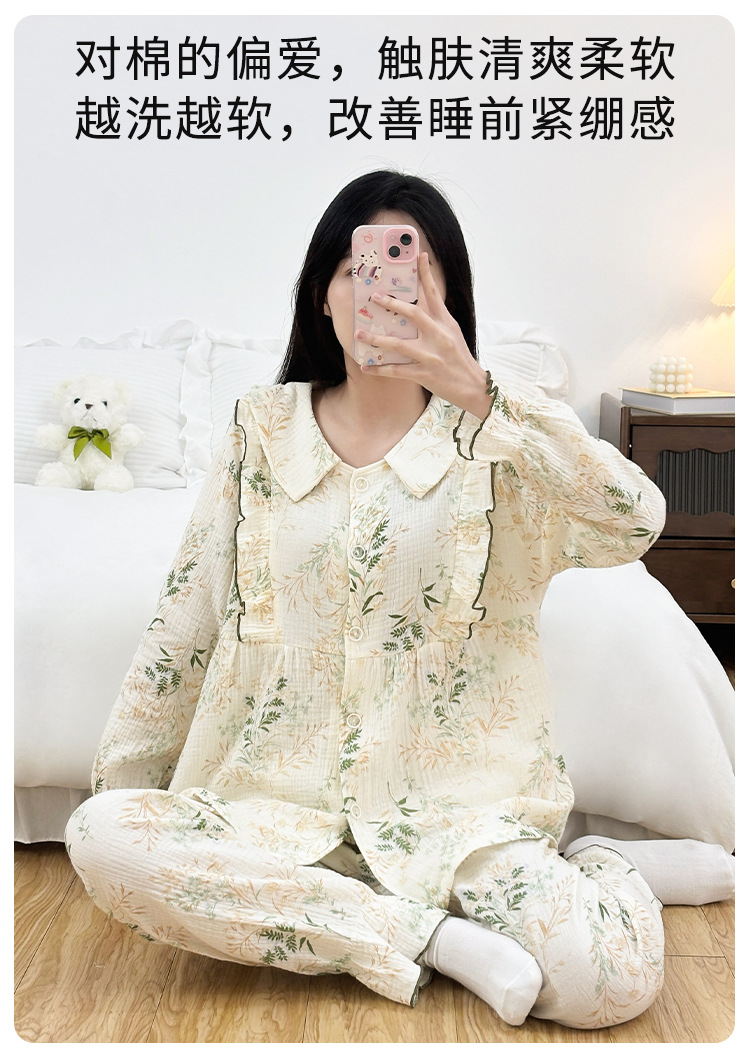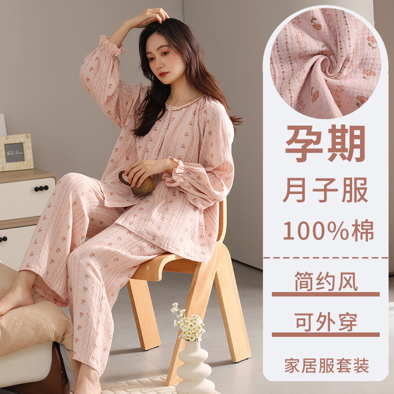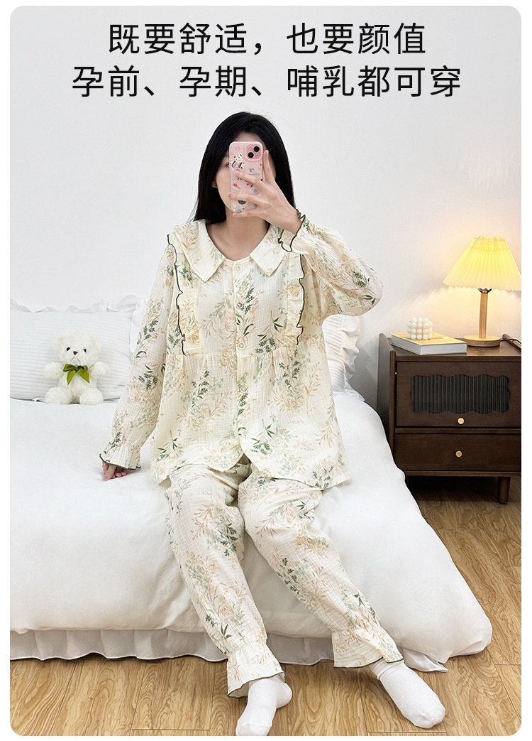 純綿二重クレープ月子服産後春夏吸汗通気性甘い純色ガーゼ妊婦授乳ホームウェア