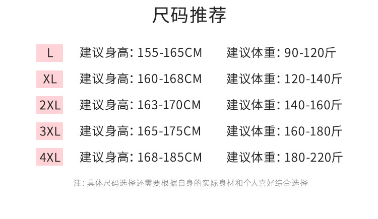 サイズ L (55kg 未満を推奨),XL (推奨 55-65kg),XXL (65-75kg を推奨)