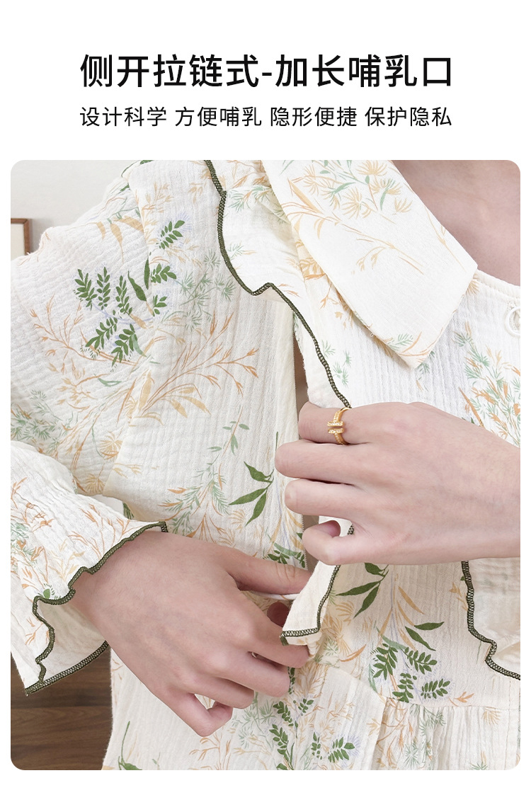 綿ガーゼ新しい産後服ルーズ純綿授乳パジャマ女性の春と夏の産後授乳服マタニティスーツ