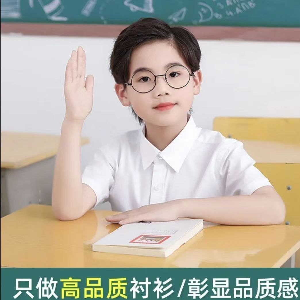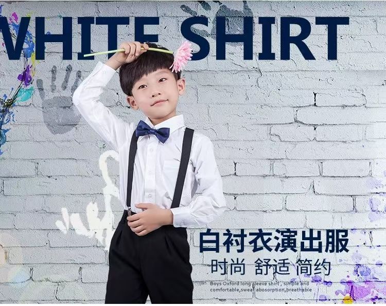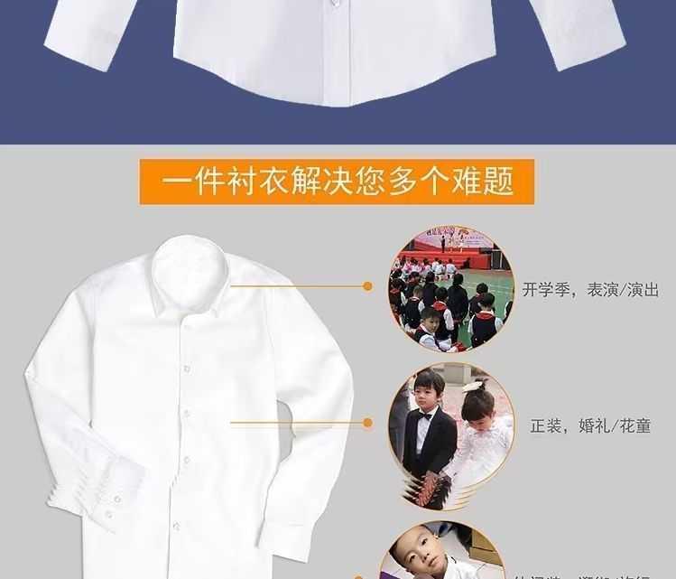 子供用の白いシャツの男の子と女の子の長袖の純綿の白いシャツの春と夏の小中学生の制服の表は服装を演出します。