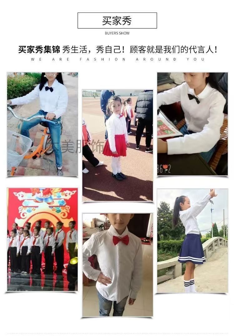 子供白シャツ、園服、女子長袖純綿白シャツ、春秋小中学校制服、パフォーマンスユニフォーム