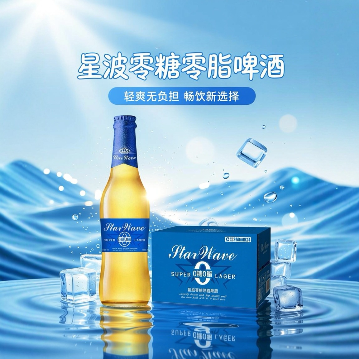 星波零糖零脂啤酒260ml*24瓶整箱装清爽低度拉格夜场KTV畅饮批发
