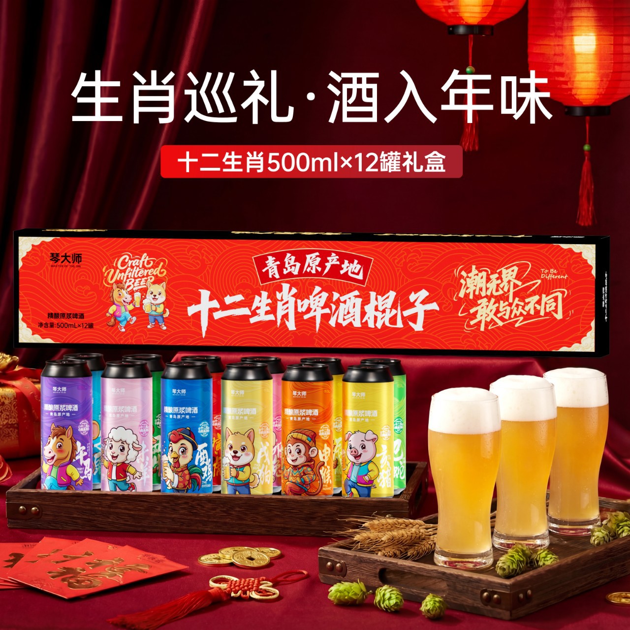 青岛产地十二生肖啤酒棍子精酿原浆节小麦白啤琴大师源头工厂