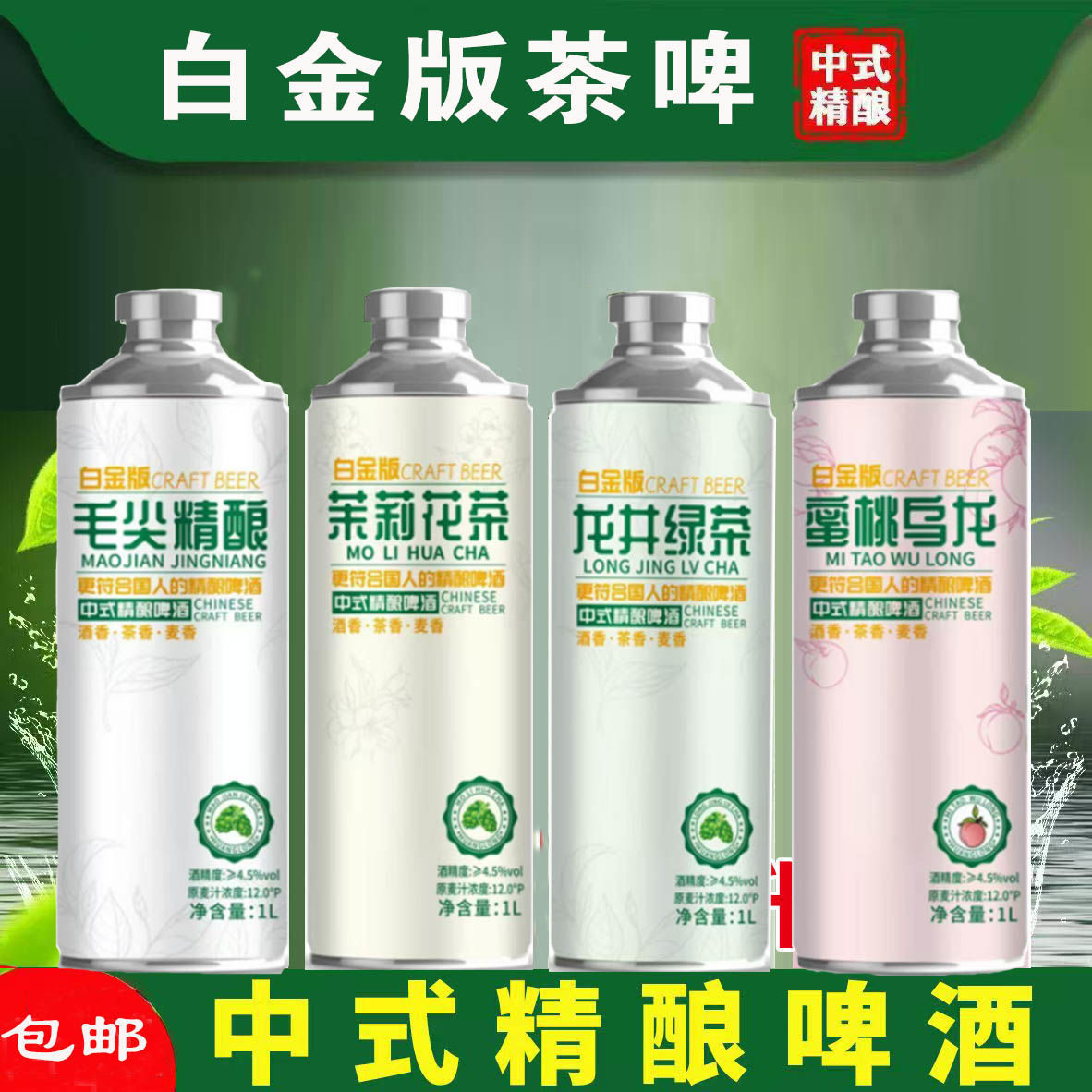 12度毛尖茶啤原浆茶啤茉莉花茶1L大桶蜜桃乌龙/龙井整箱茶香精酿