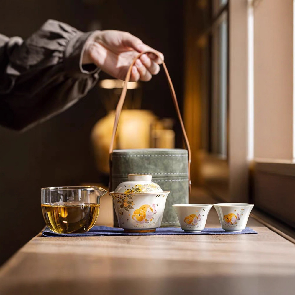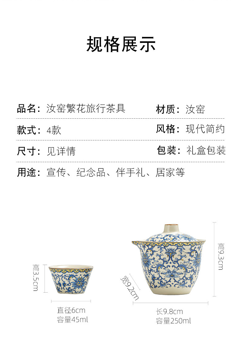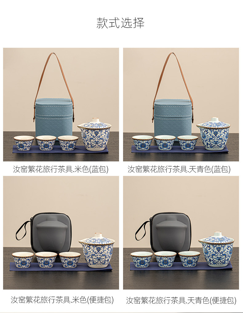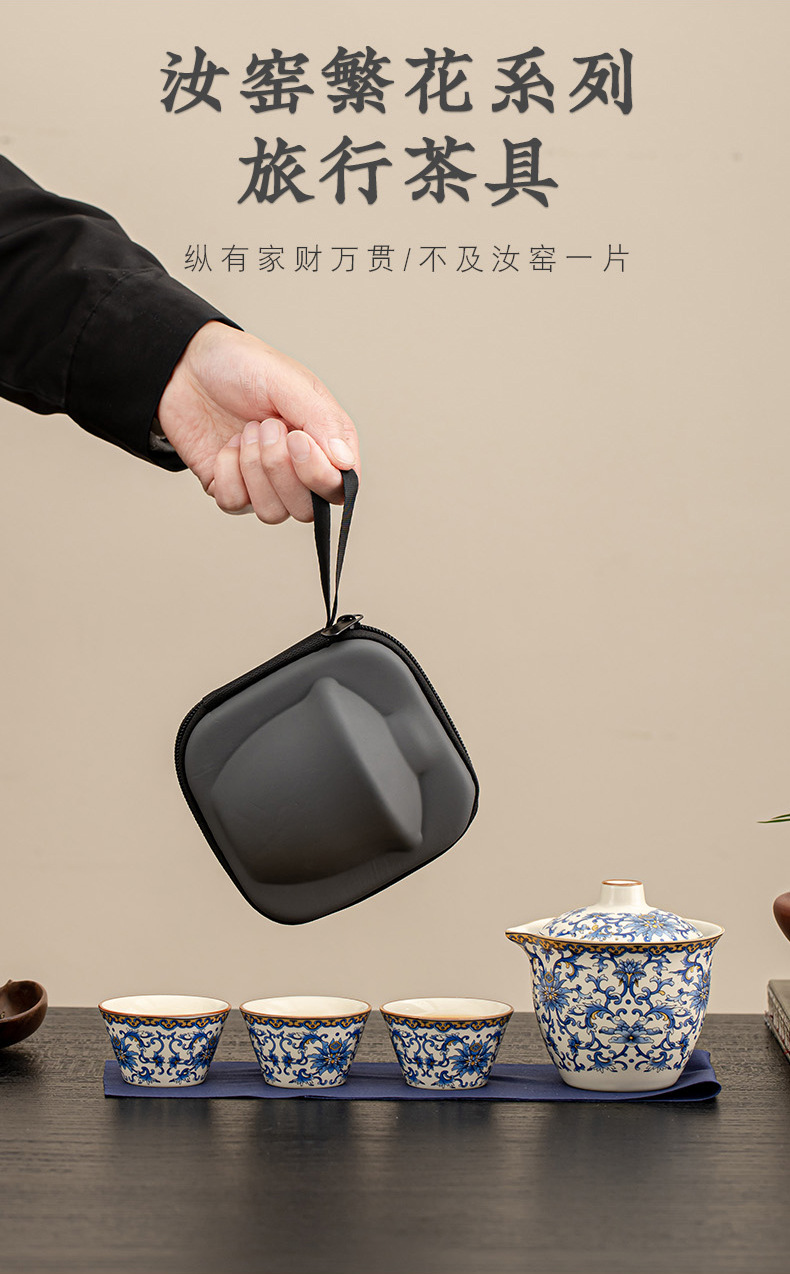 汝窑便携旅行茶具套装一壶四杯轻奢户外露营陶瓷快客杯商务礼品